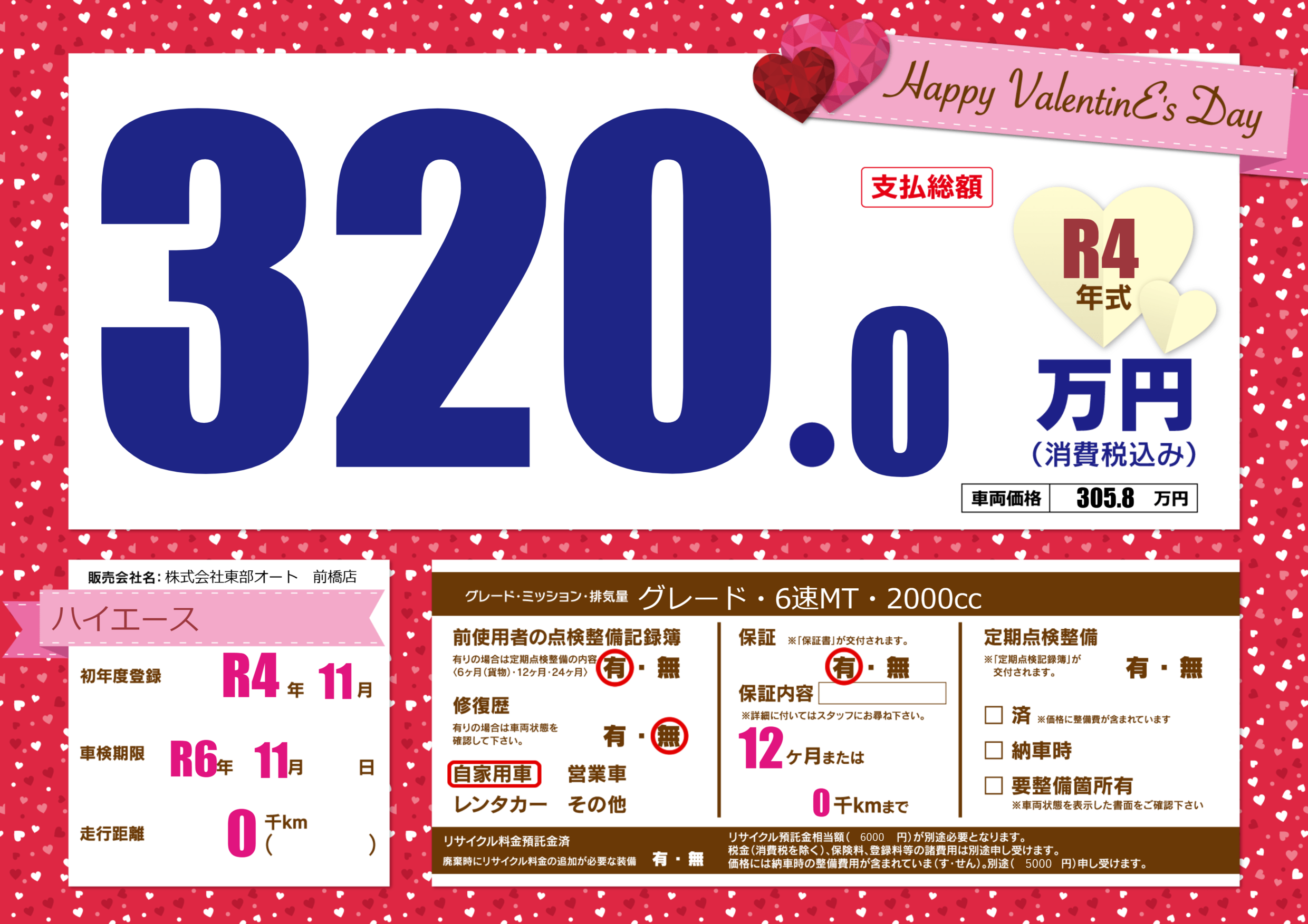 | 車名 | ハイエース | グレード ミッション 排気量 |
