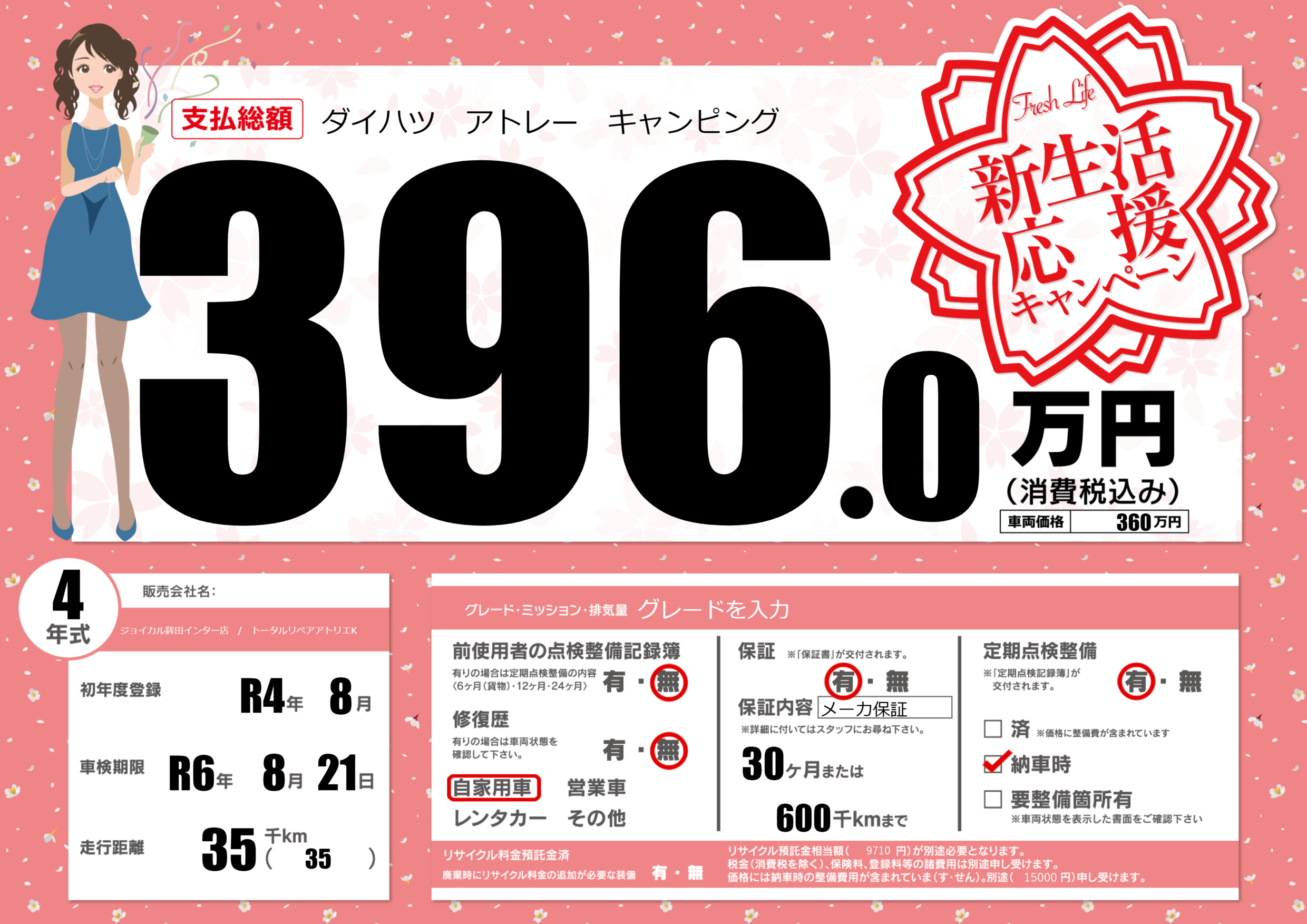 | 定期点検整備 | 定期点検整備あり 納車時あり | ||
