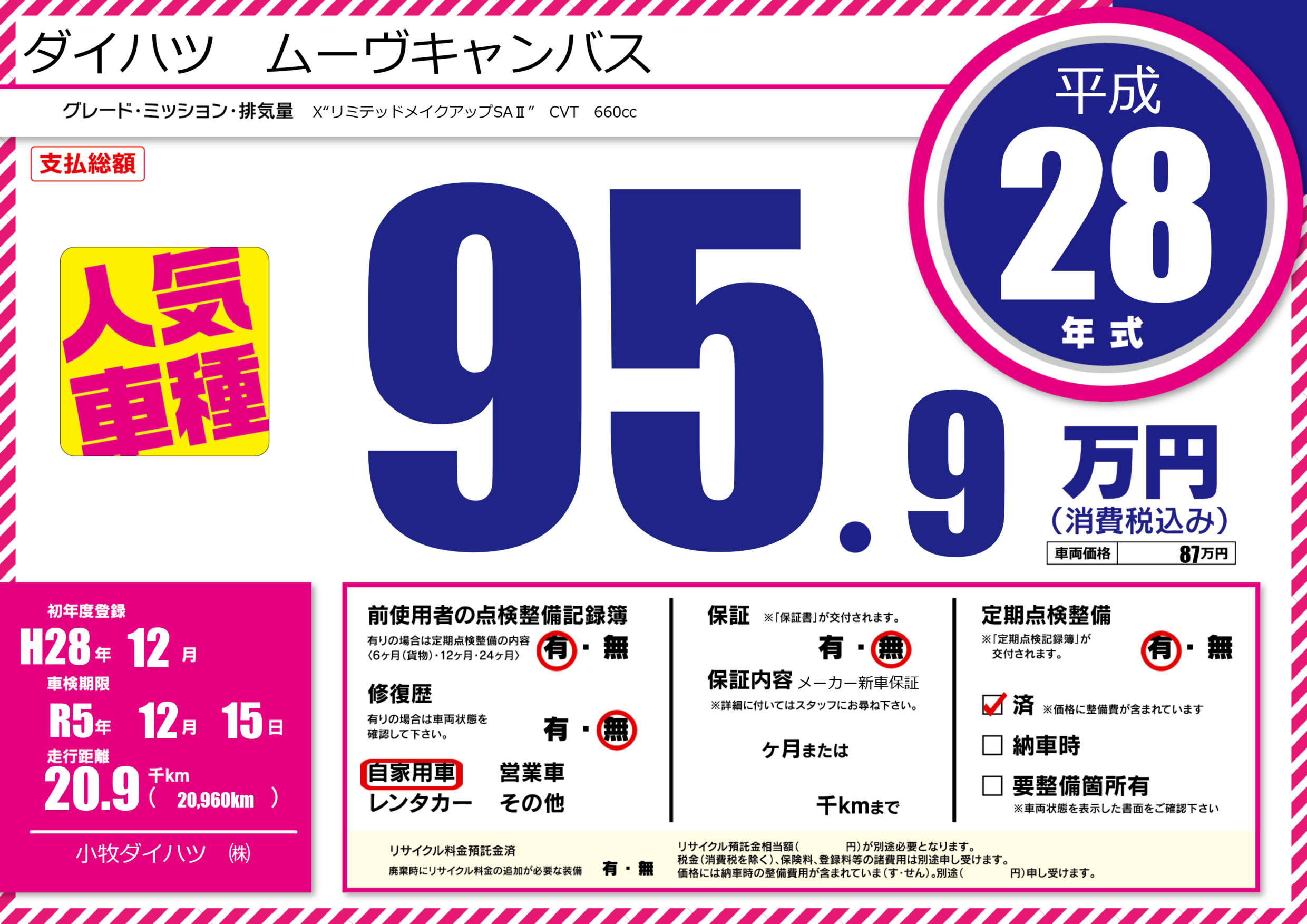 | 定期点検整備 | 定期点検整備あり 定期点検整備済み | ||
