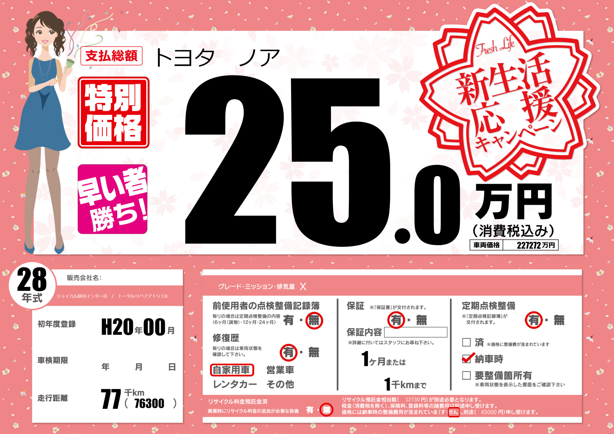 | 走行キロ | 7.7万km | 初年度登録 | H20年00月 |