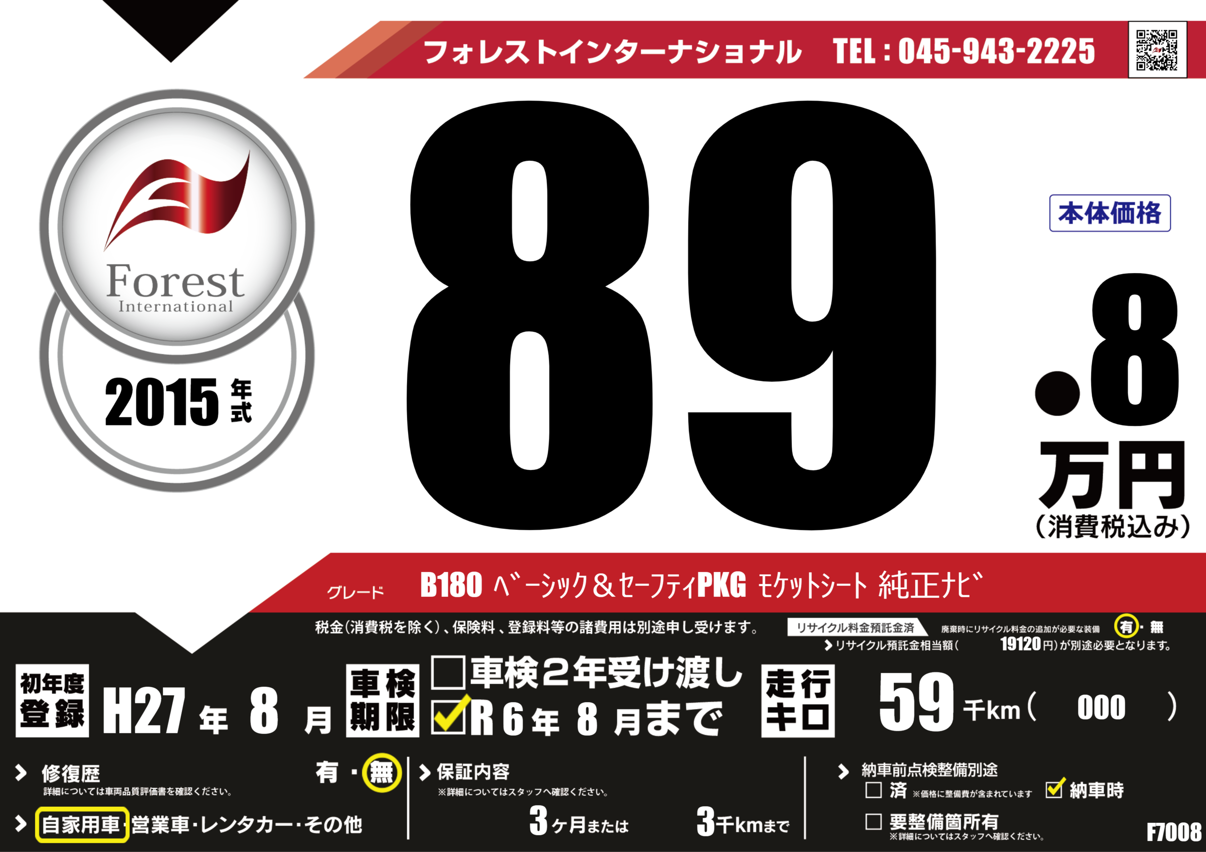 B180 ベーシック&セーフティPKG モケットシート 純正ナビ |