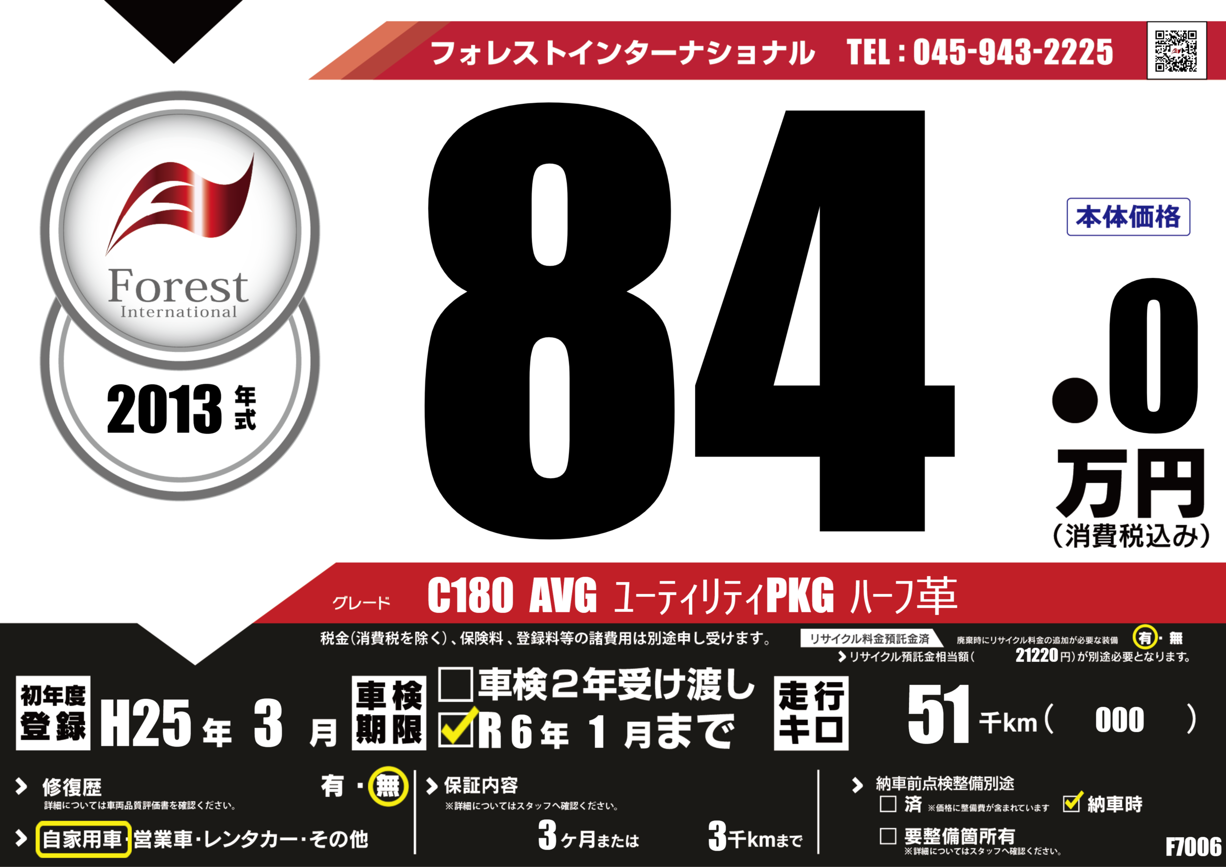 | 走行キロ | 5.1万km | 初年度登録 | H25年3月 |