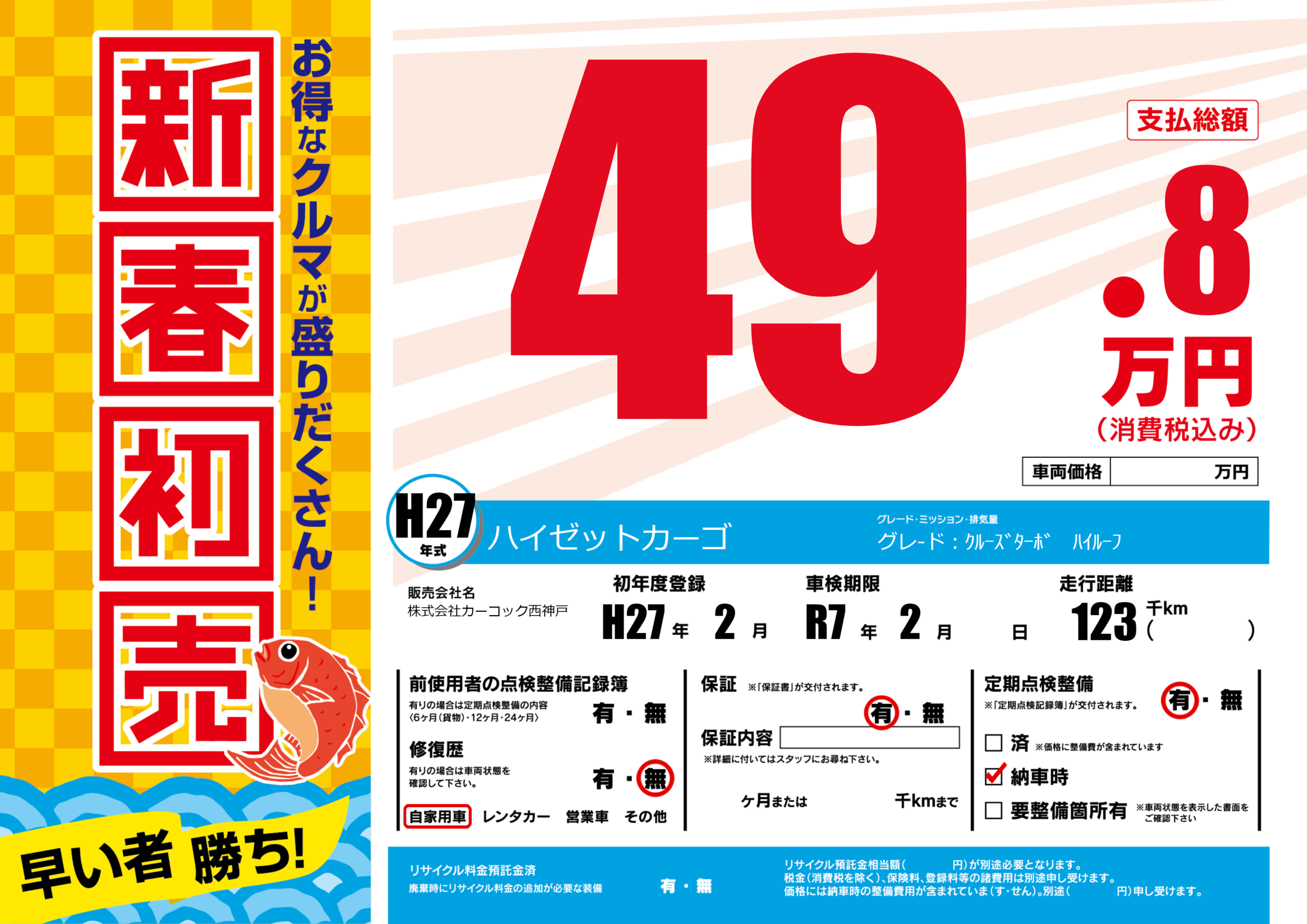 | 車名 | ハイゼットカーゴ | グレード ミッション 排気量 |