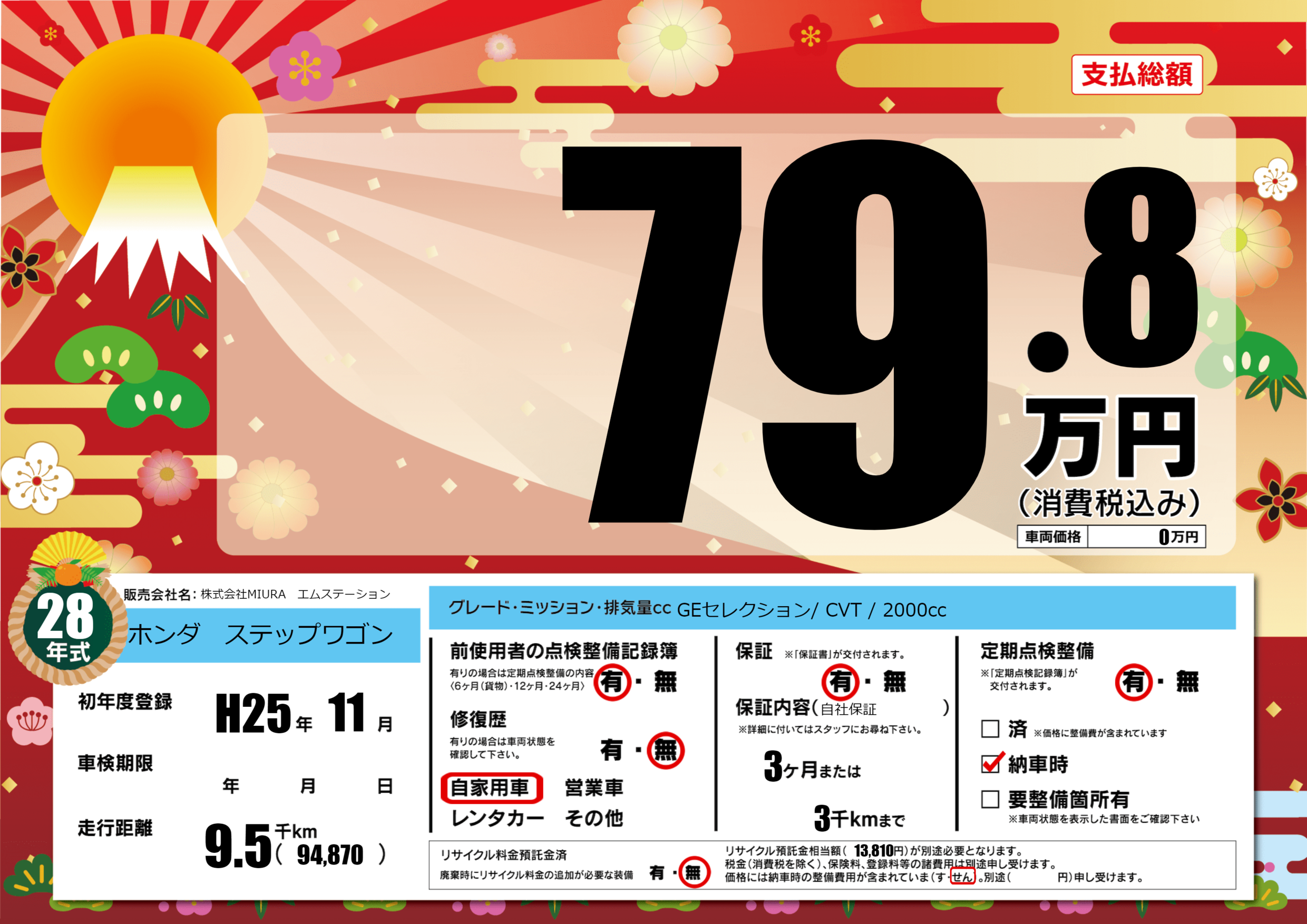 保証付き 保証内容(自社保証) 3ヶ月または3千km |