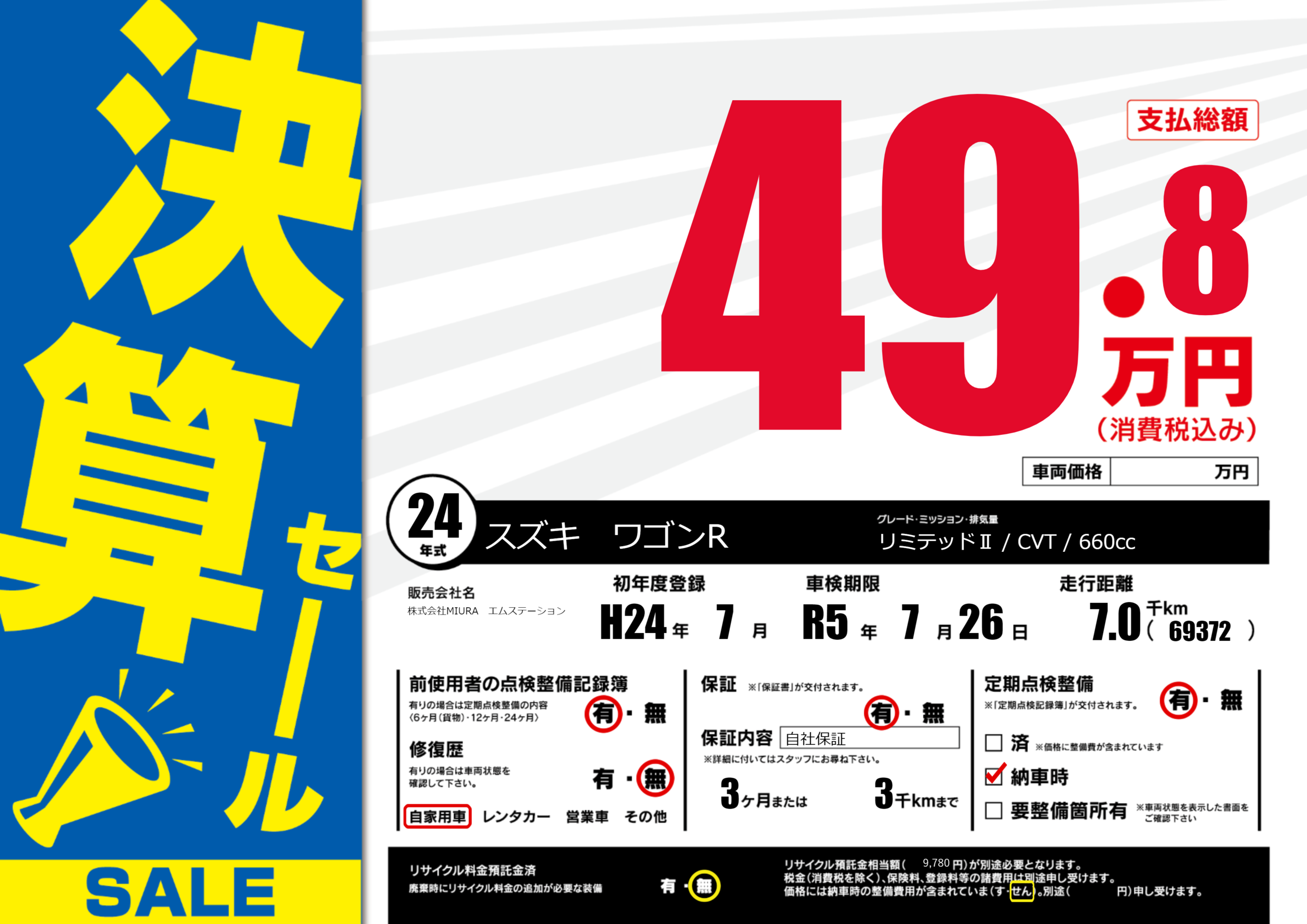なし | 車検制限 | R5年7月26月 |