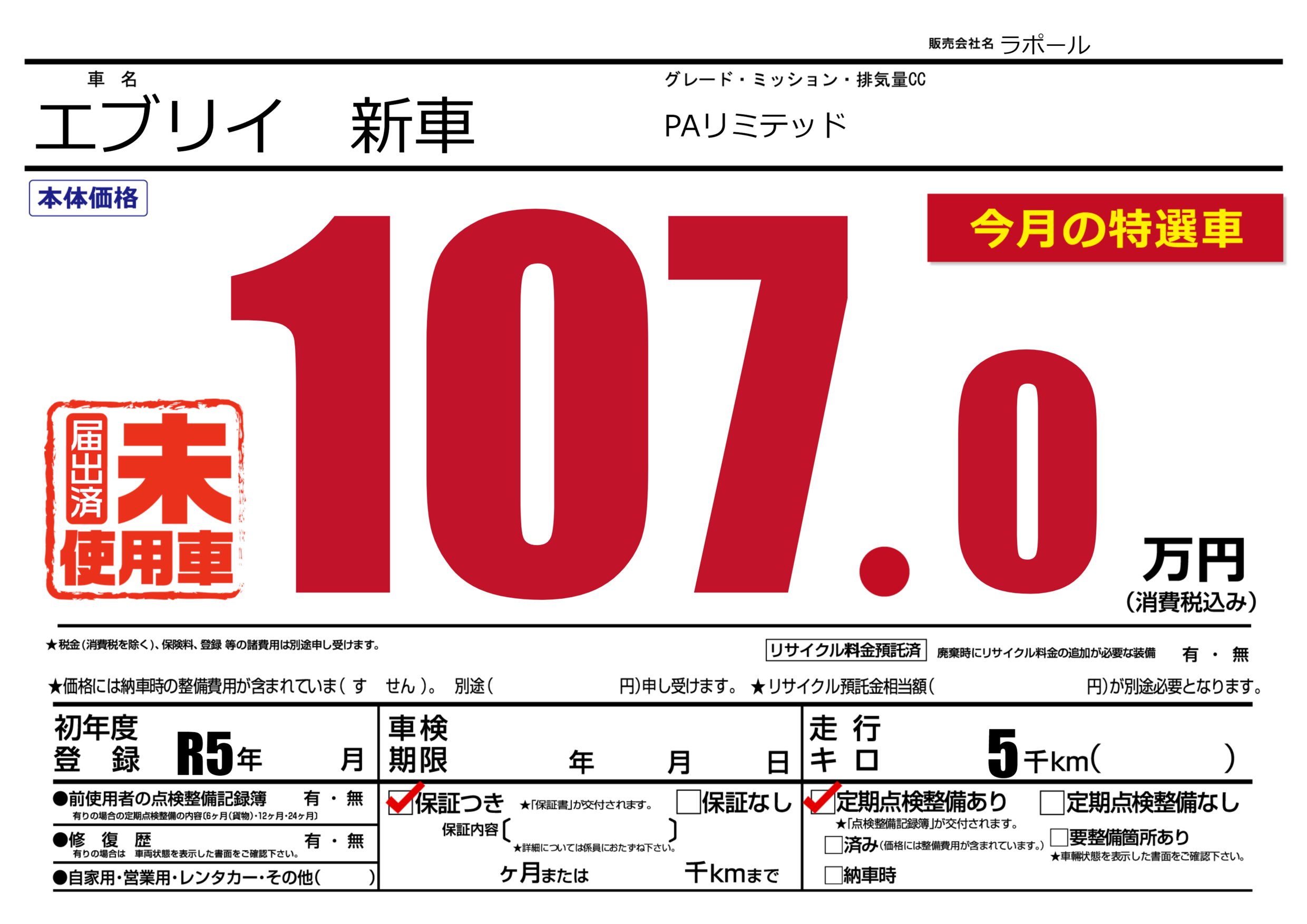 株式会社ラポール 軽バンマーケットの展示車をすべて見る