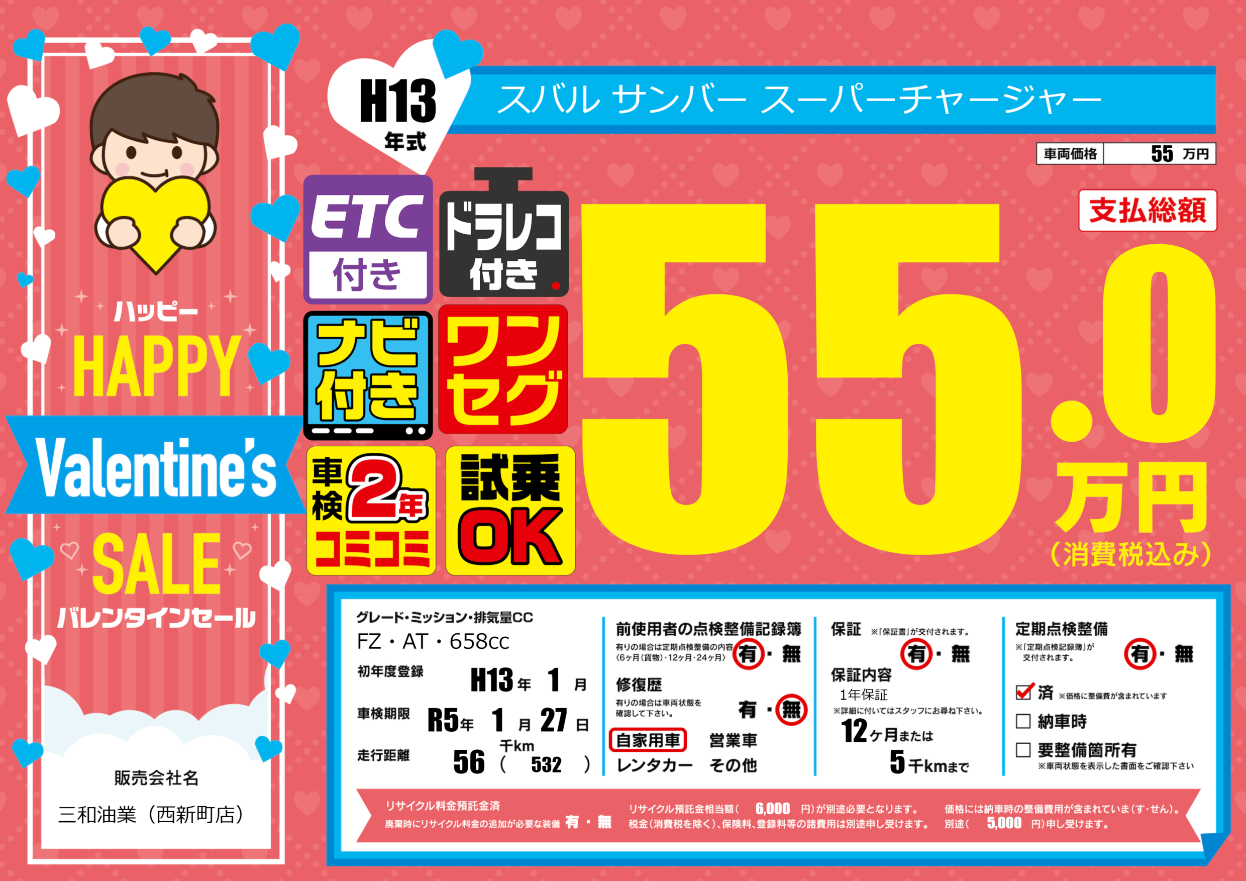 | 定期点検整備 | 定期点検整備あり 定期点検整備済み | ||