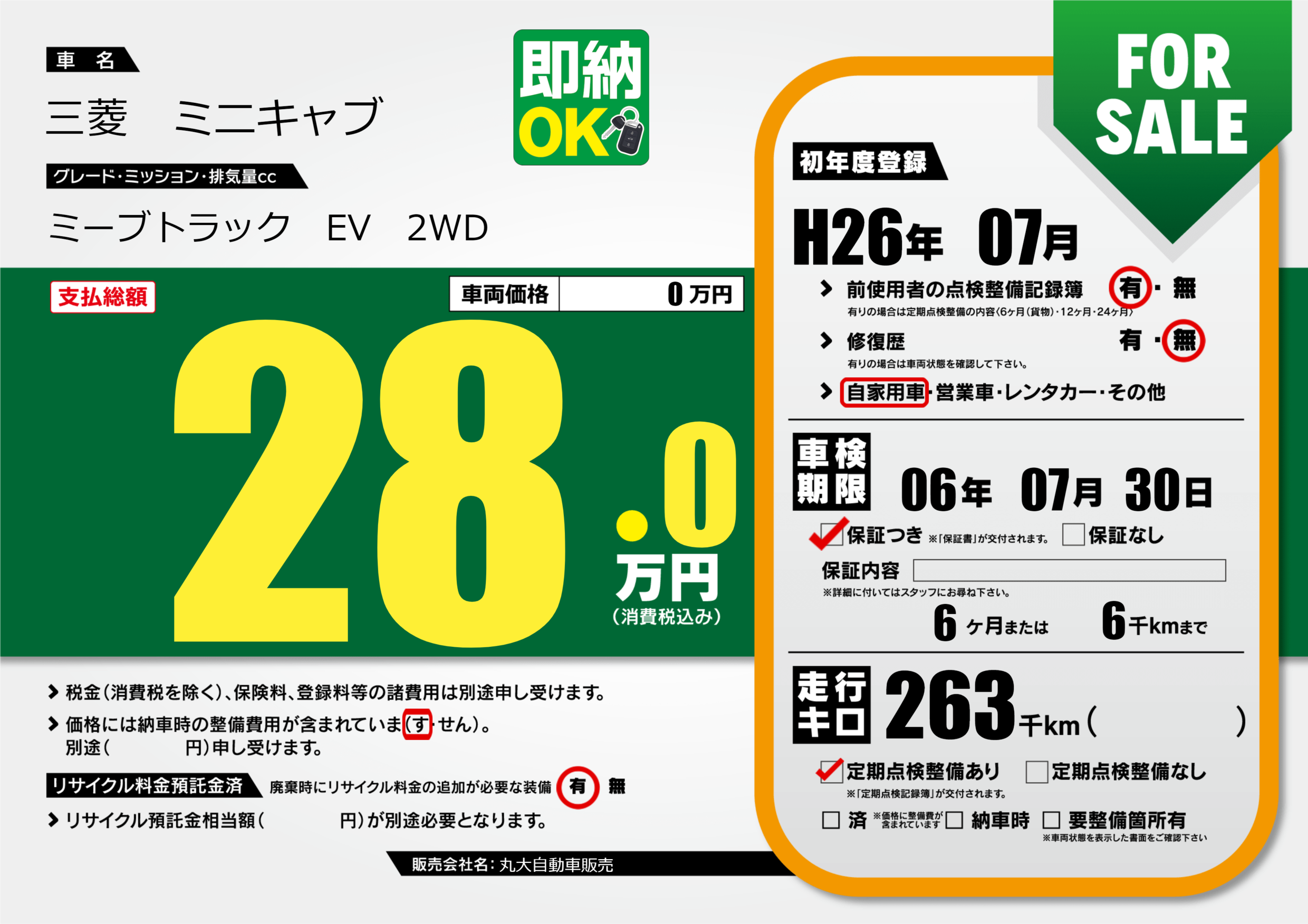 | 走行キロ | 26.3万km | 初年度登録 | H26年07月 |