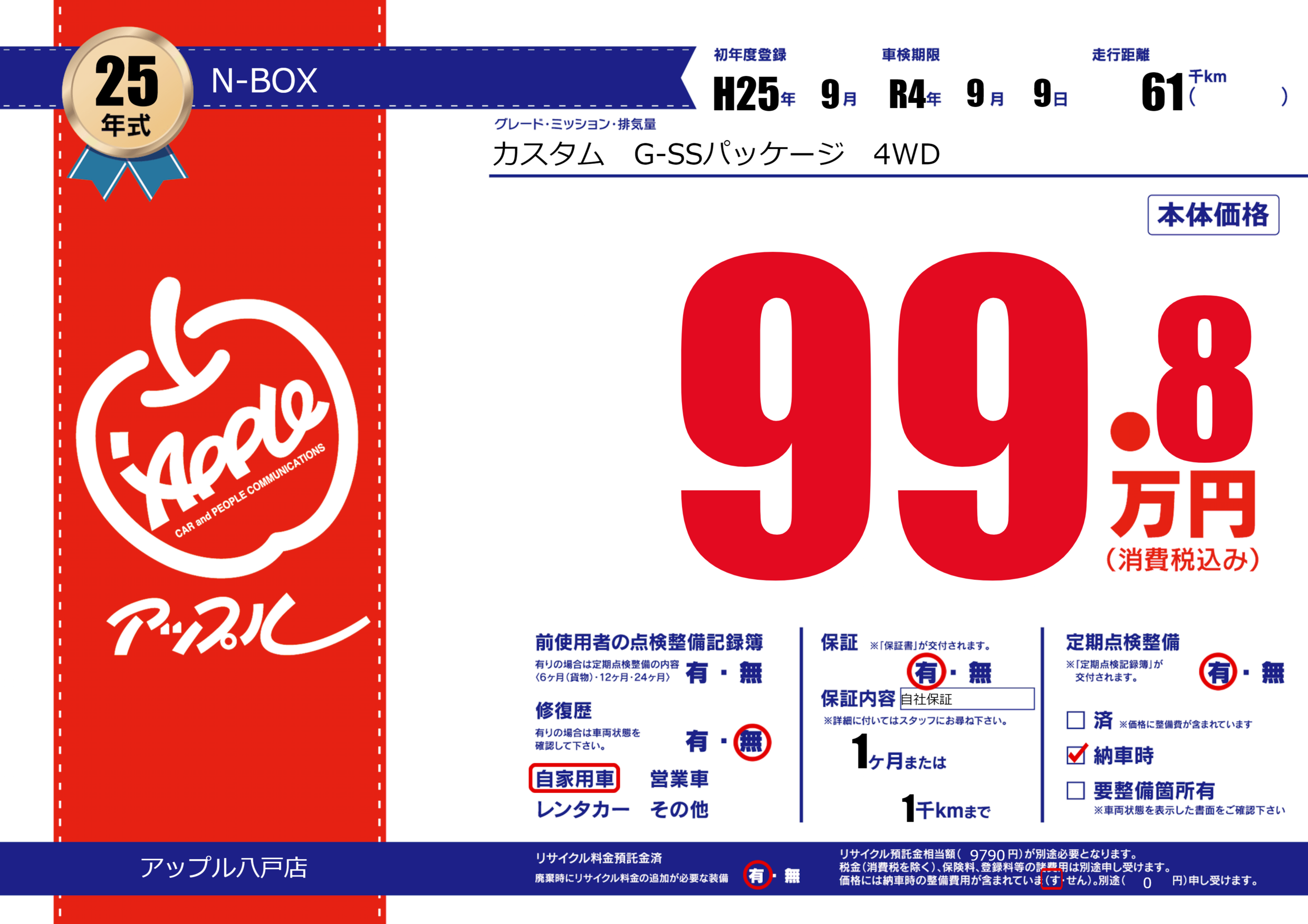 | 定期点検整備 | 定期点検整備あり 納車時あり | ||