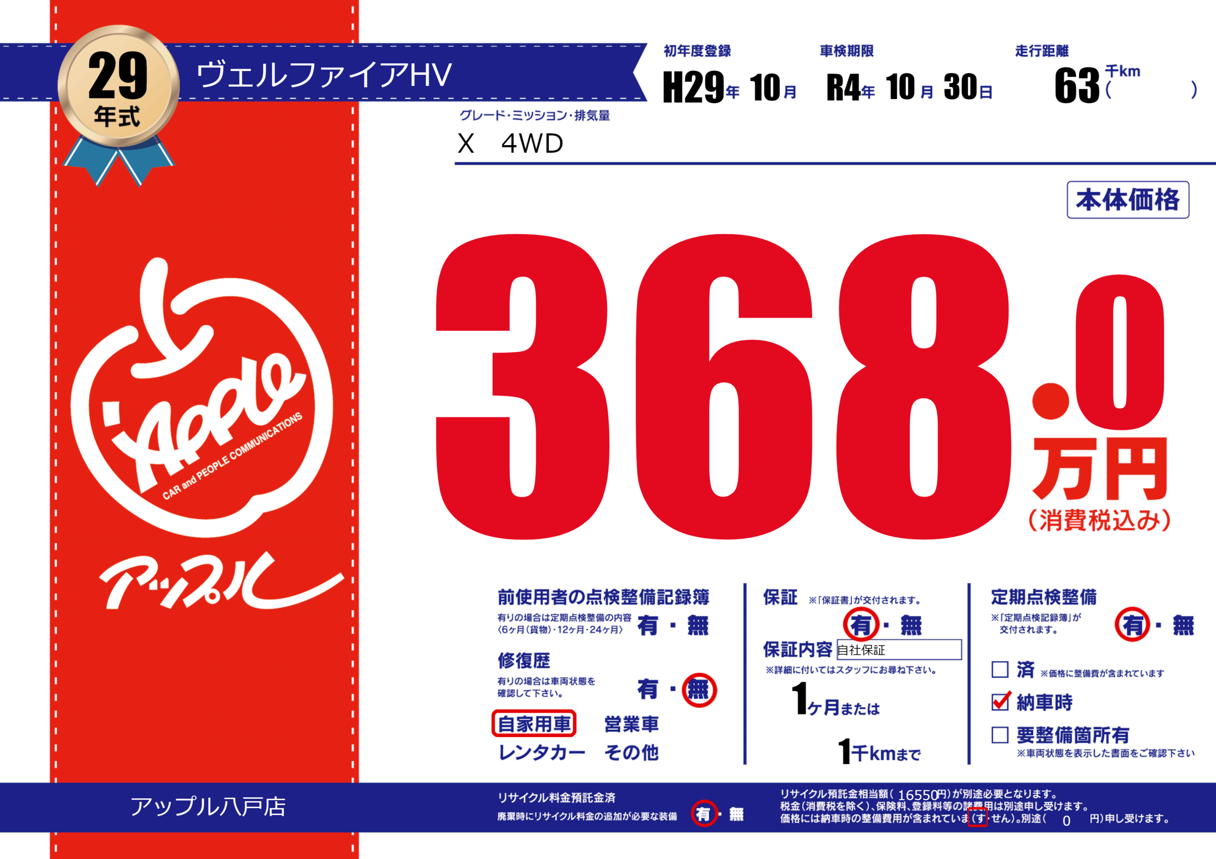 | 車検制限 | R4年 10月 30日 | ||