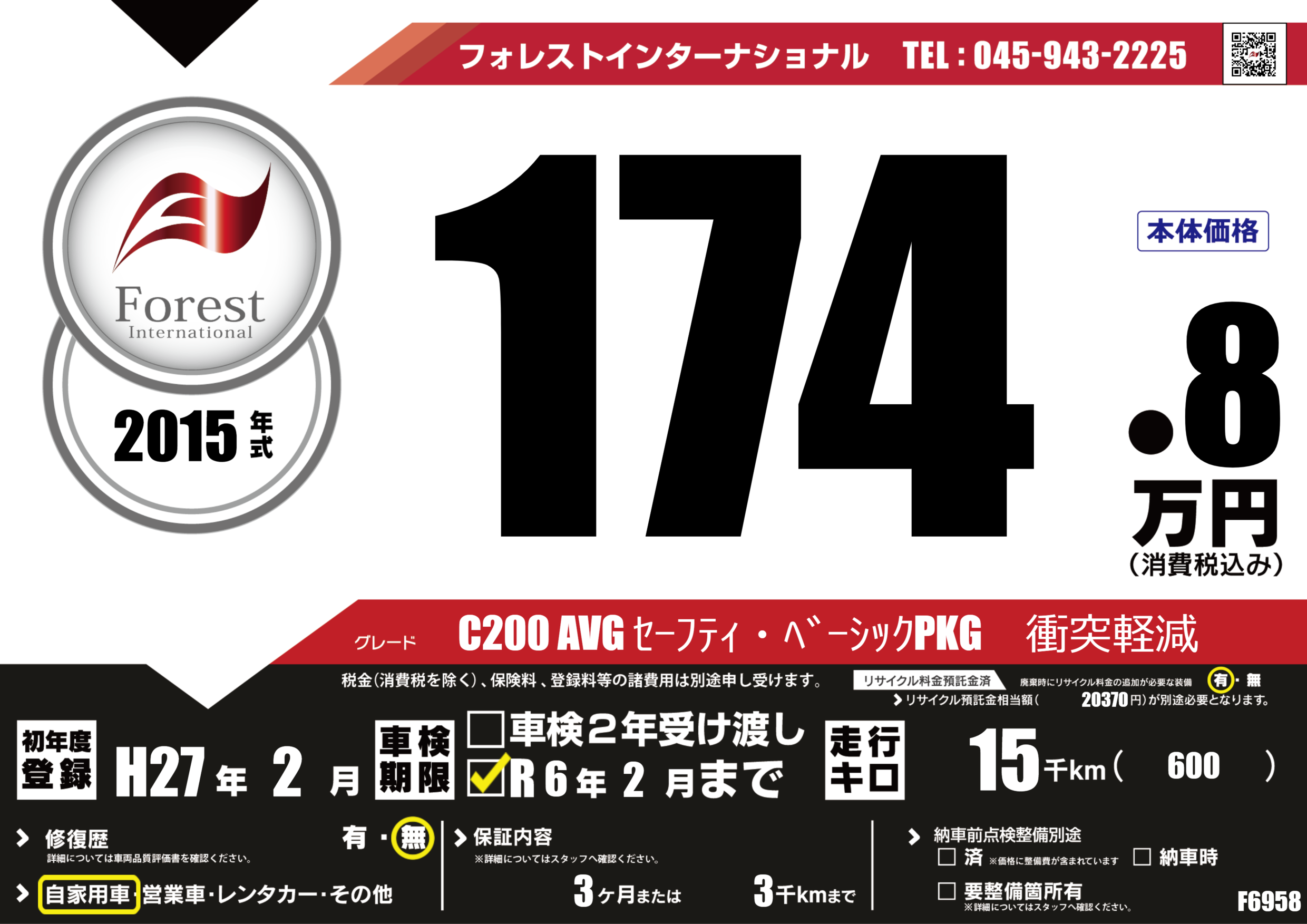 | 走行キロ | 1.5万km | 初年度登録 | H27年2月 |