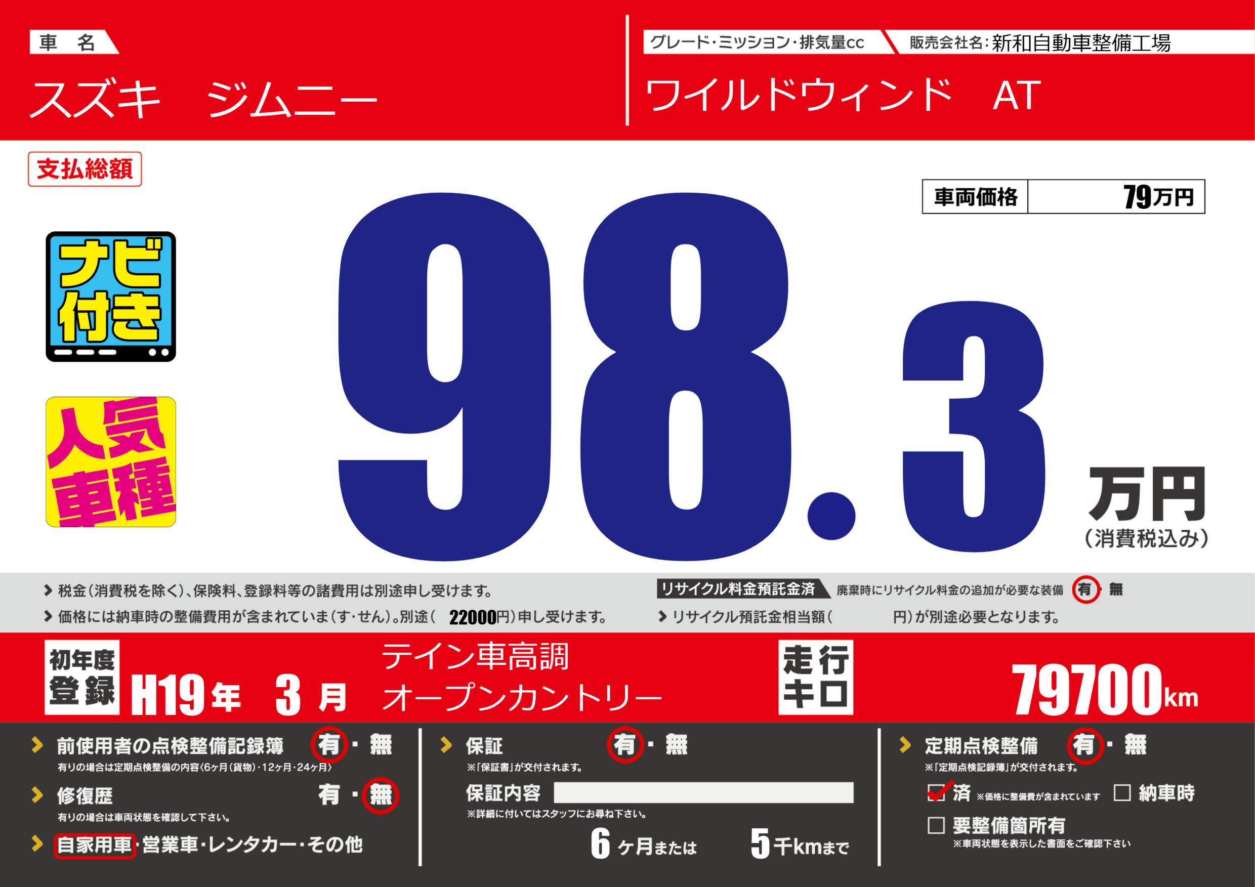 | 定期点検整備 | 定期点検整備あり 定期点検整備済み | ||