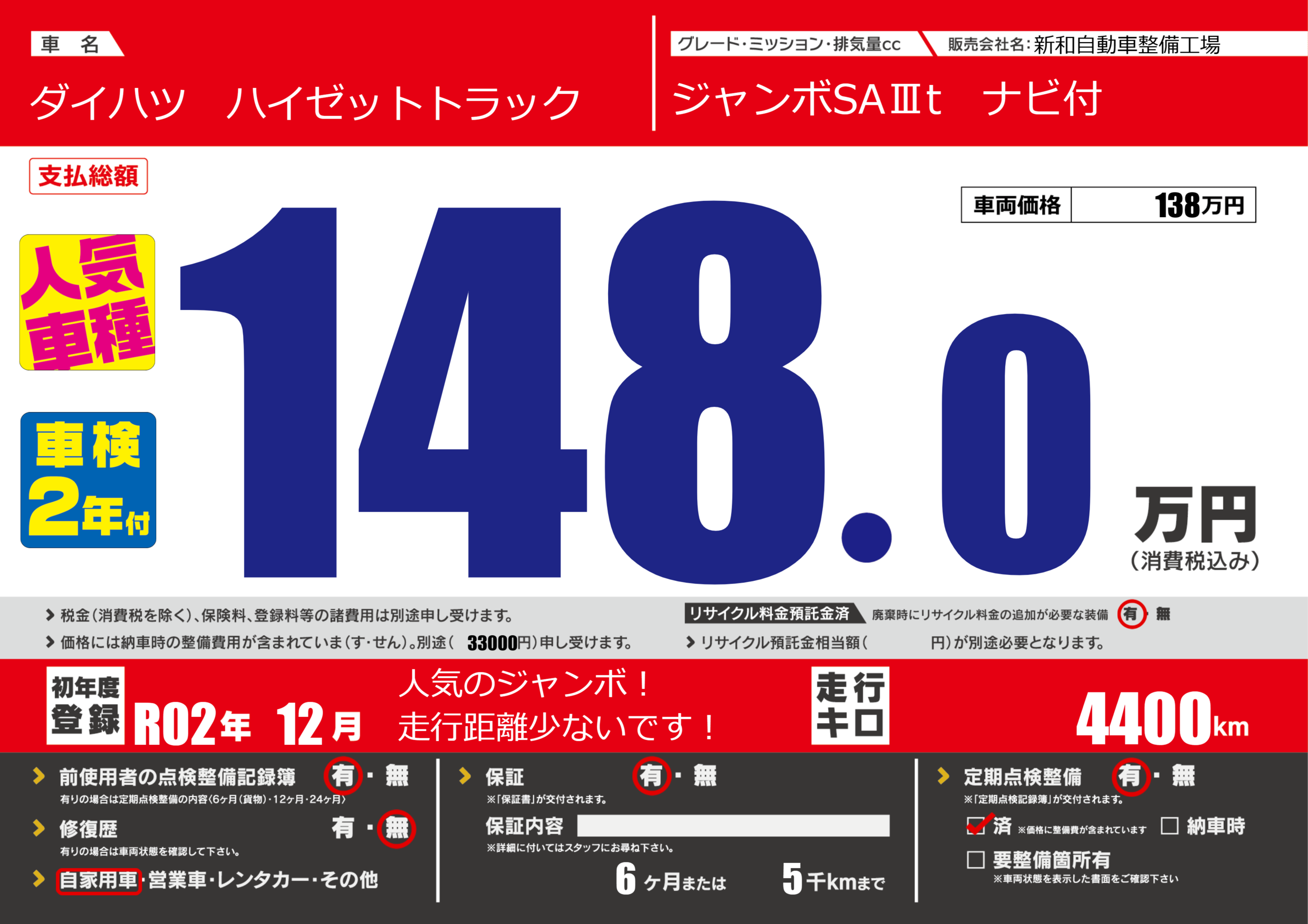 定期点検整備 定期点検整備あり 定期点検整備済み
