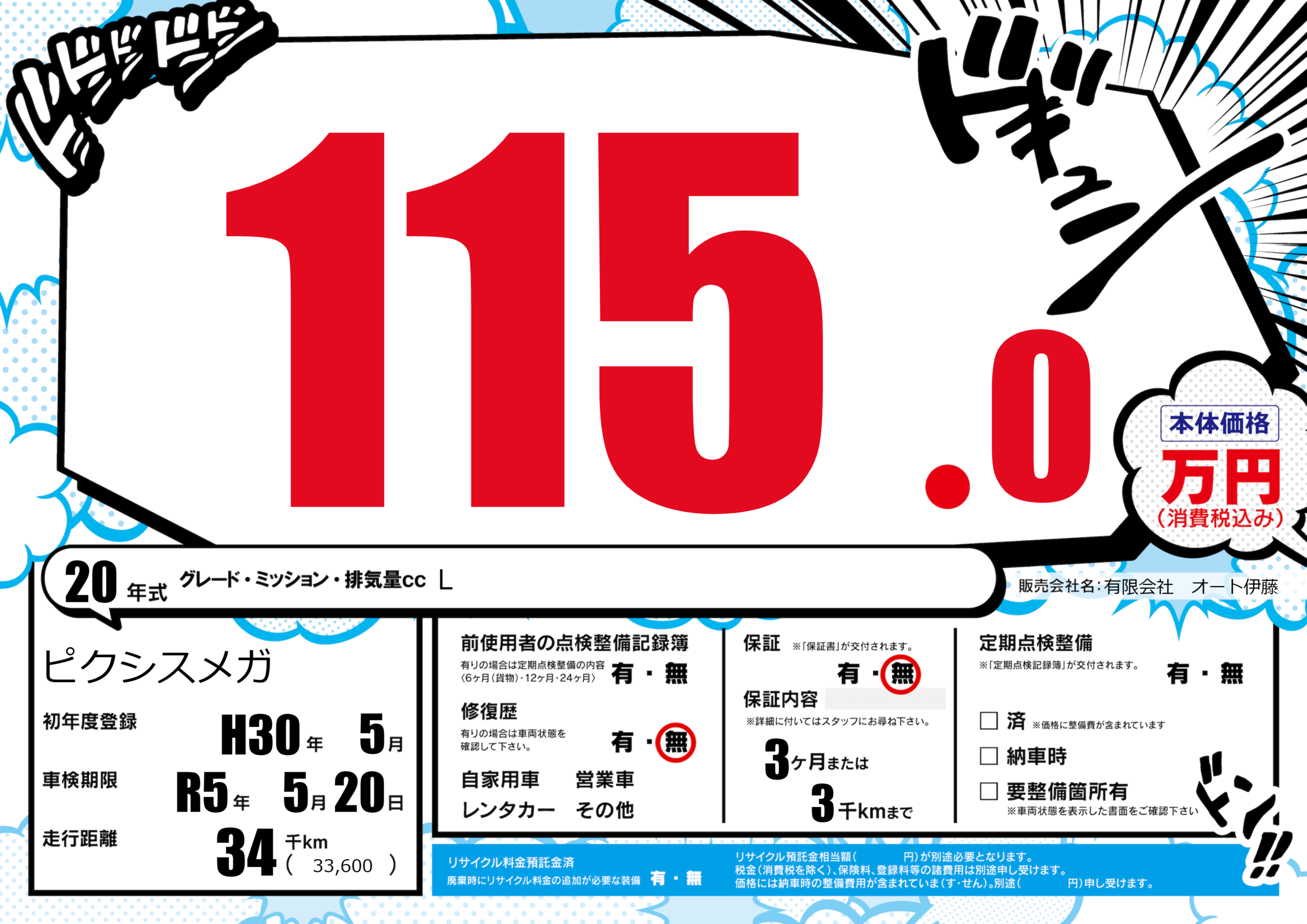 保証内容() 3ヶ月または3千km