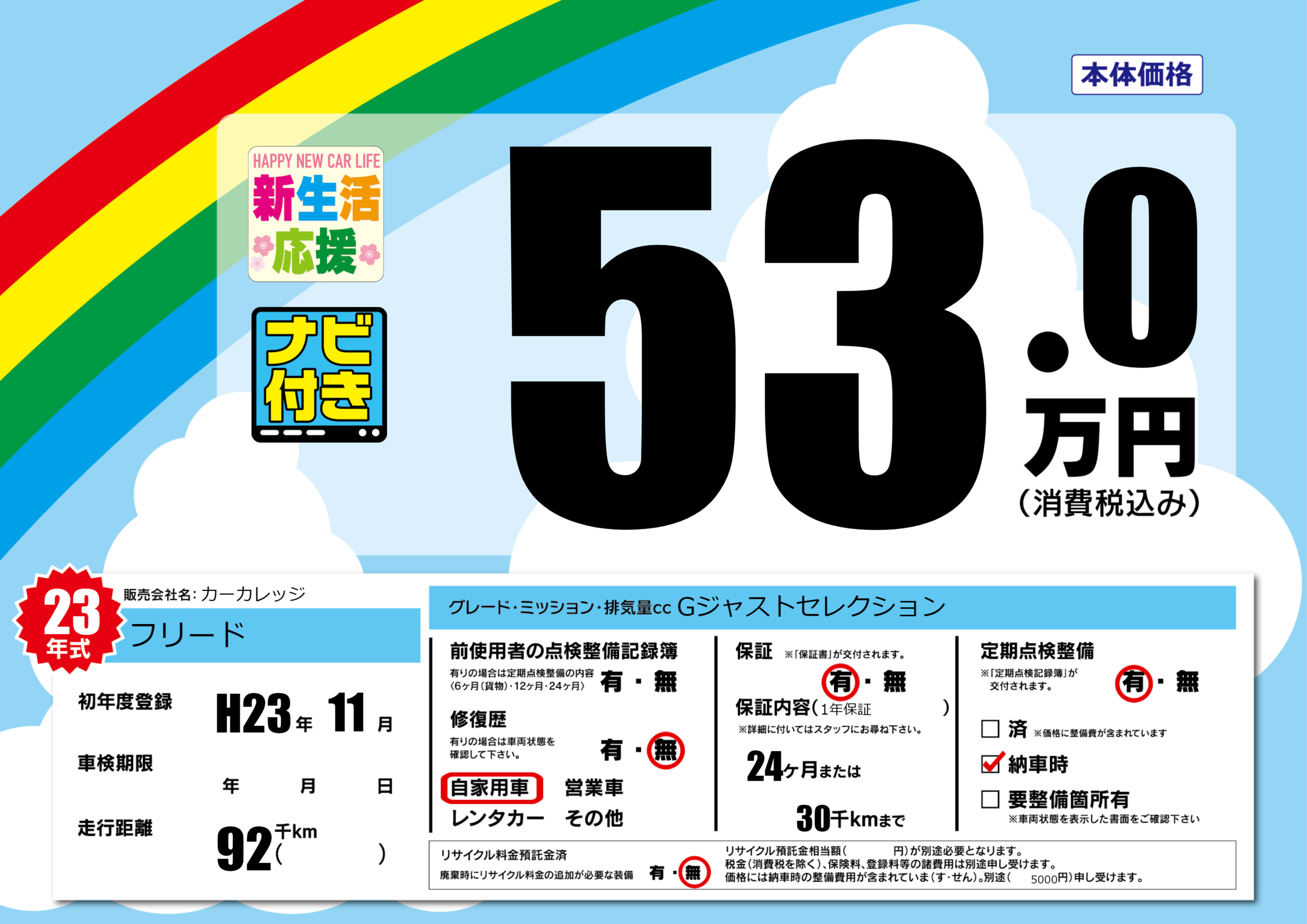 | 走行キロ | 9.2万km | 初年度登録 | H23年11月 |