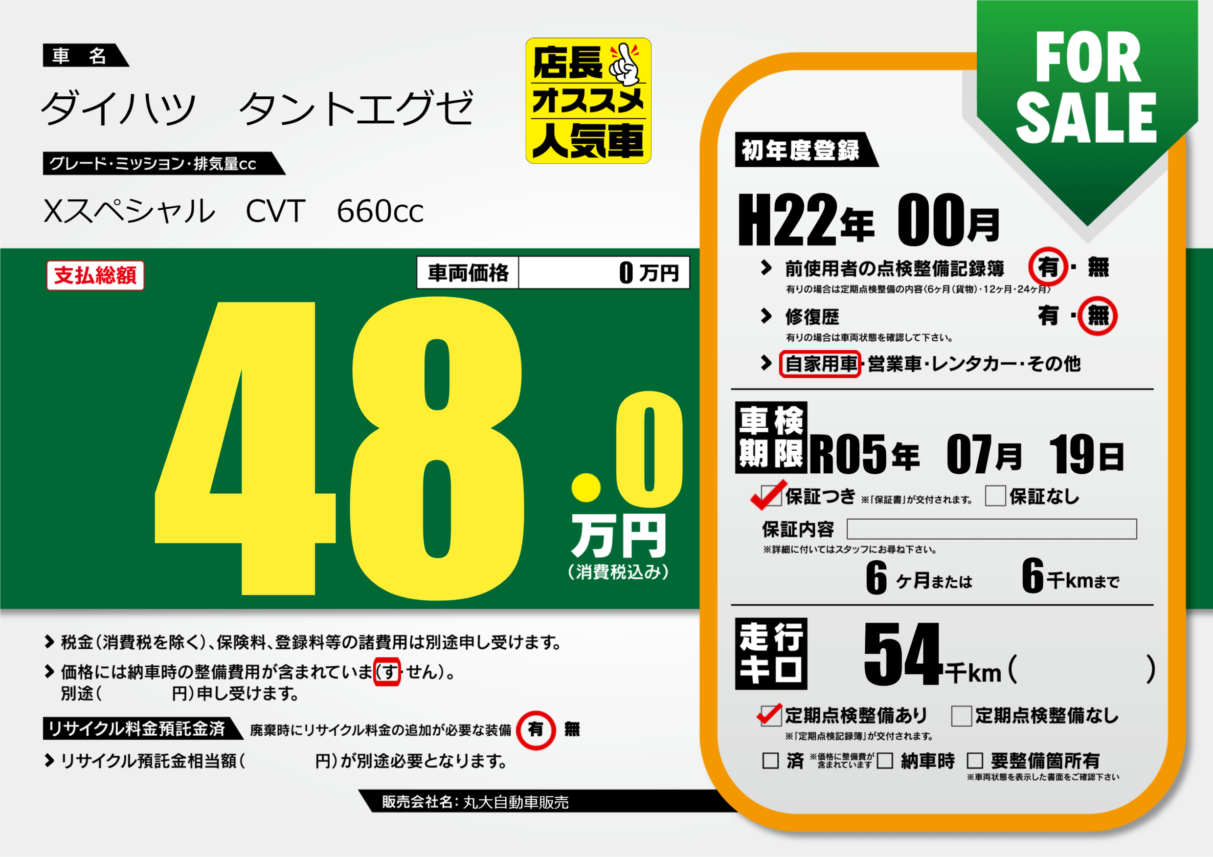 | 初年度登録 | H22年00月 | ||