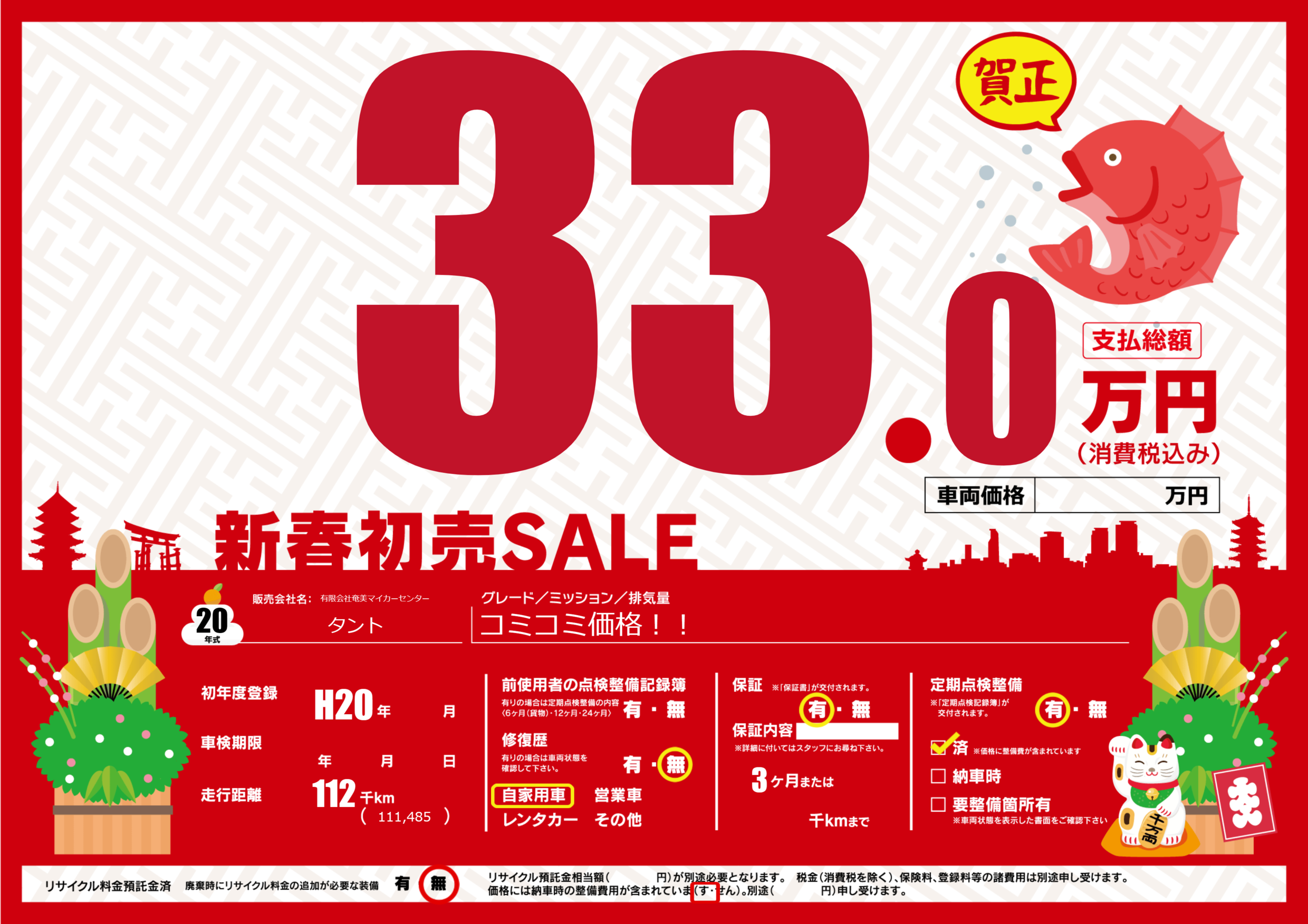 | 定期点検整備 | 定期点検整備あり 定期点検整備済み | ||