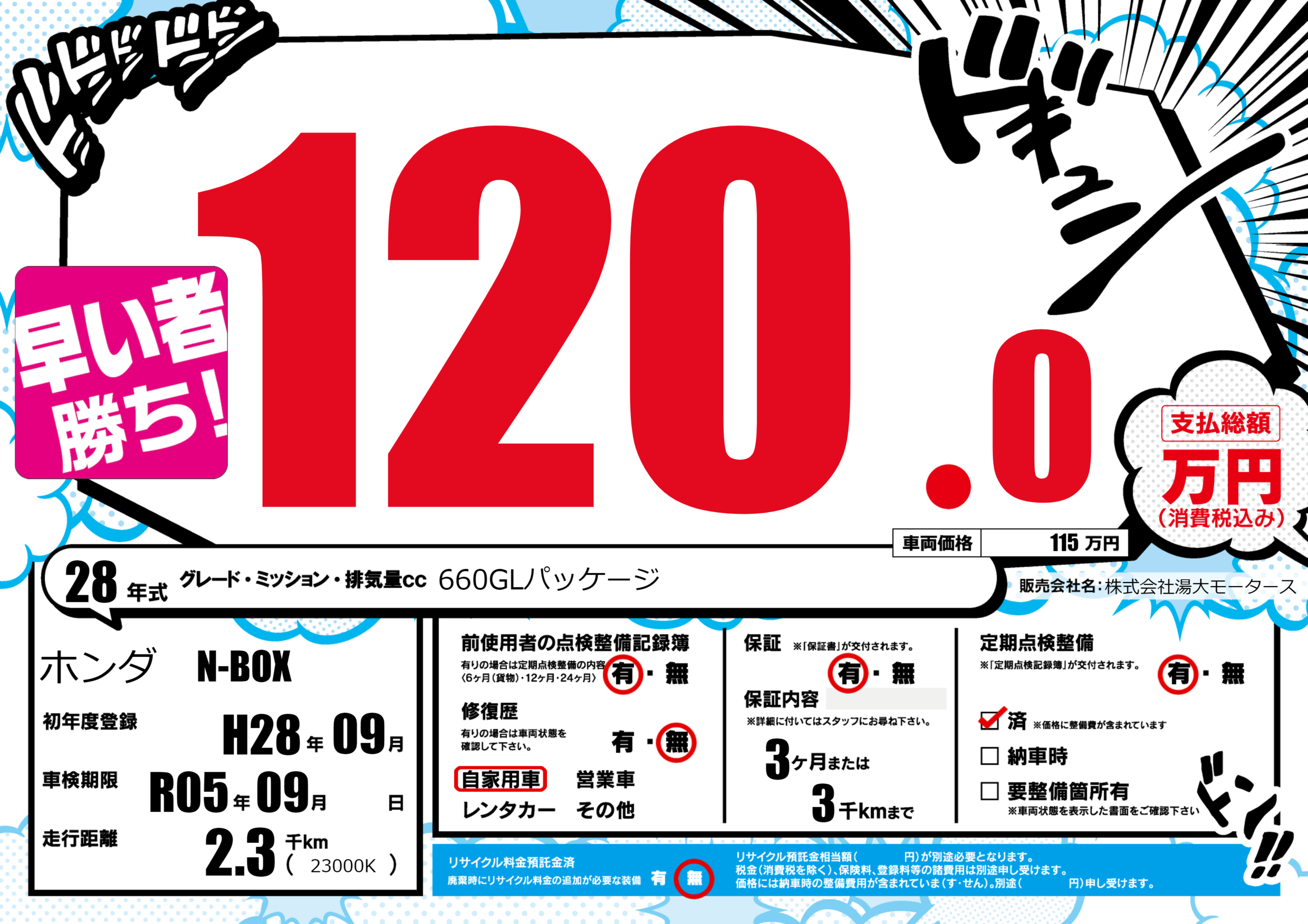 | 定期点検整備 | 定期点検整備あり 定期点検整備済み | ||