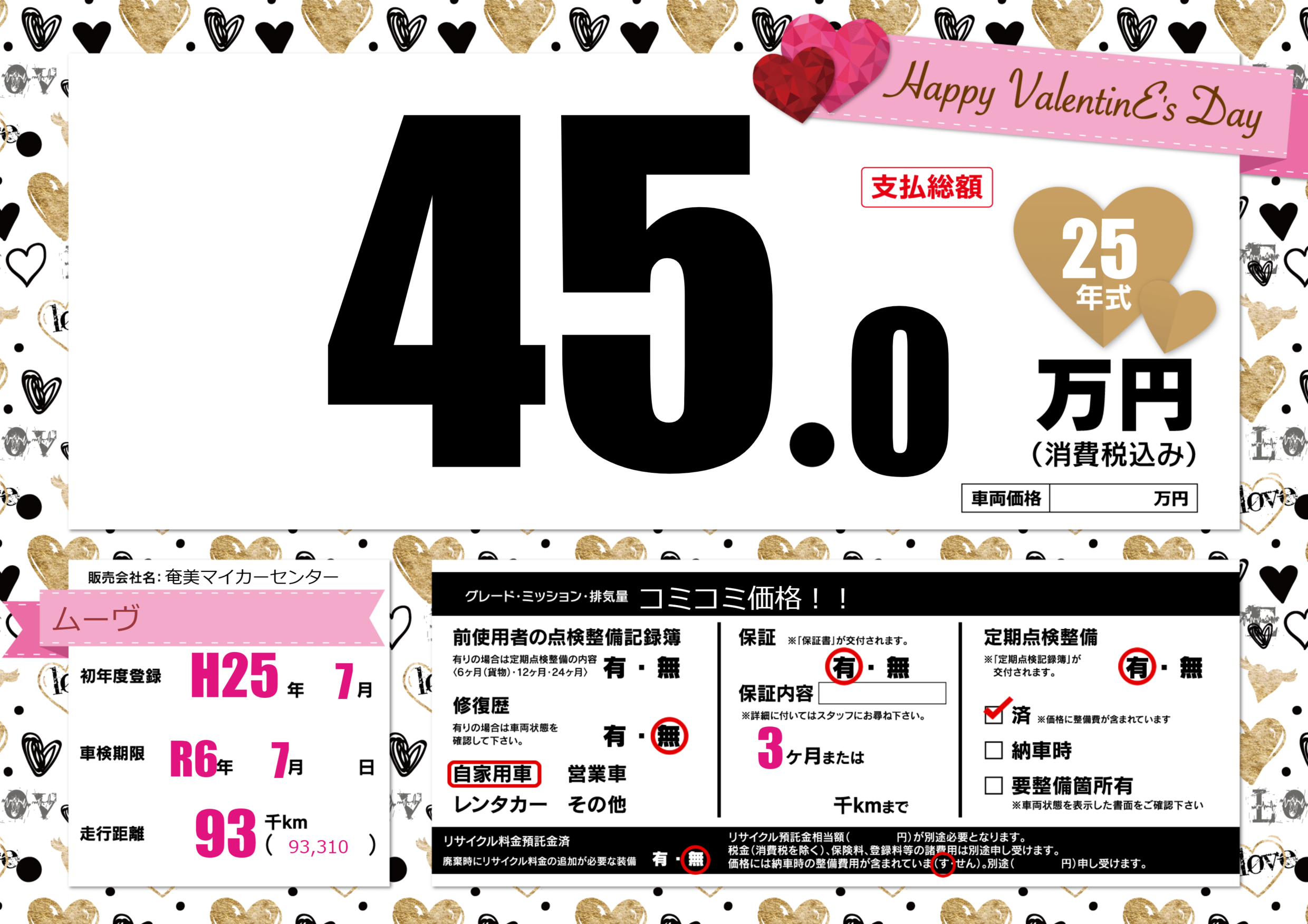 | 定期点検整備 | 定期点検整備あり 定期点検整備済み | ||