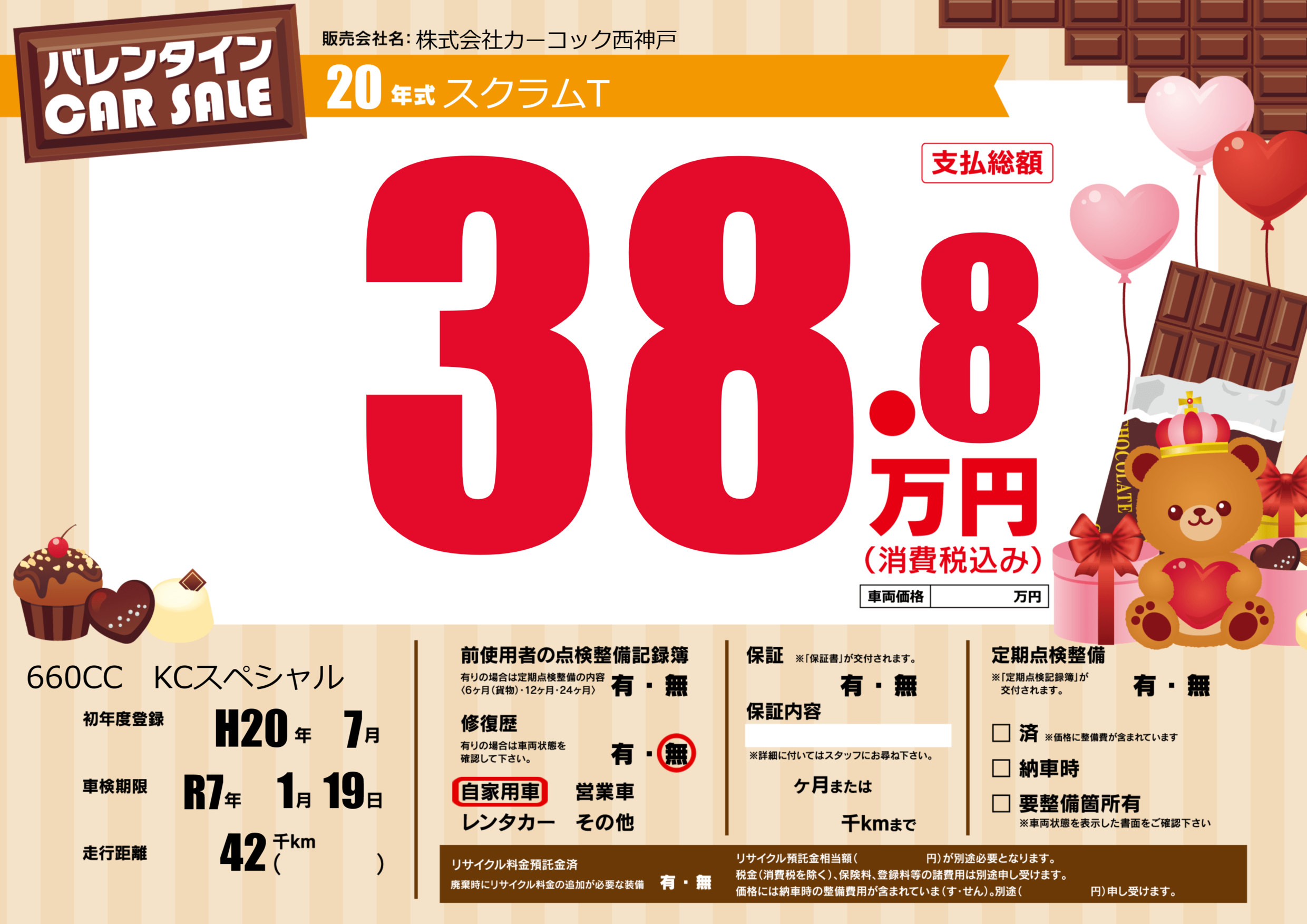 | 走行キロ | 4.2万km | 初年度登録 | H20年7月 |