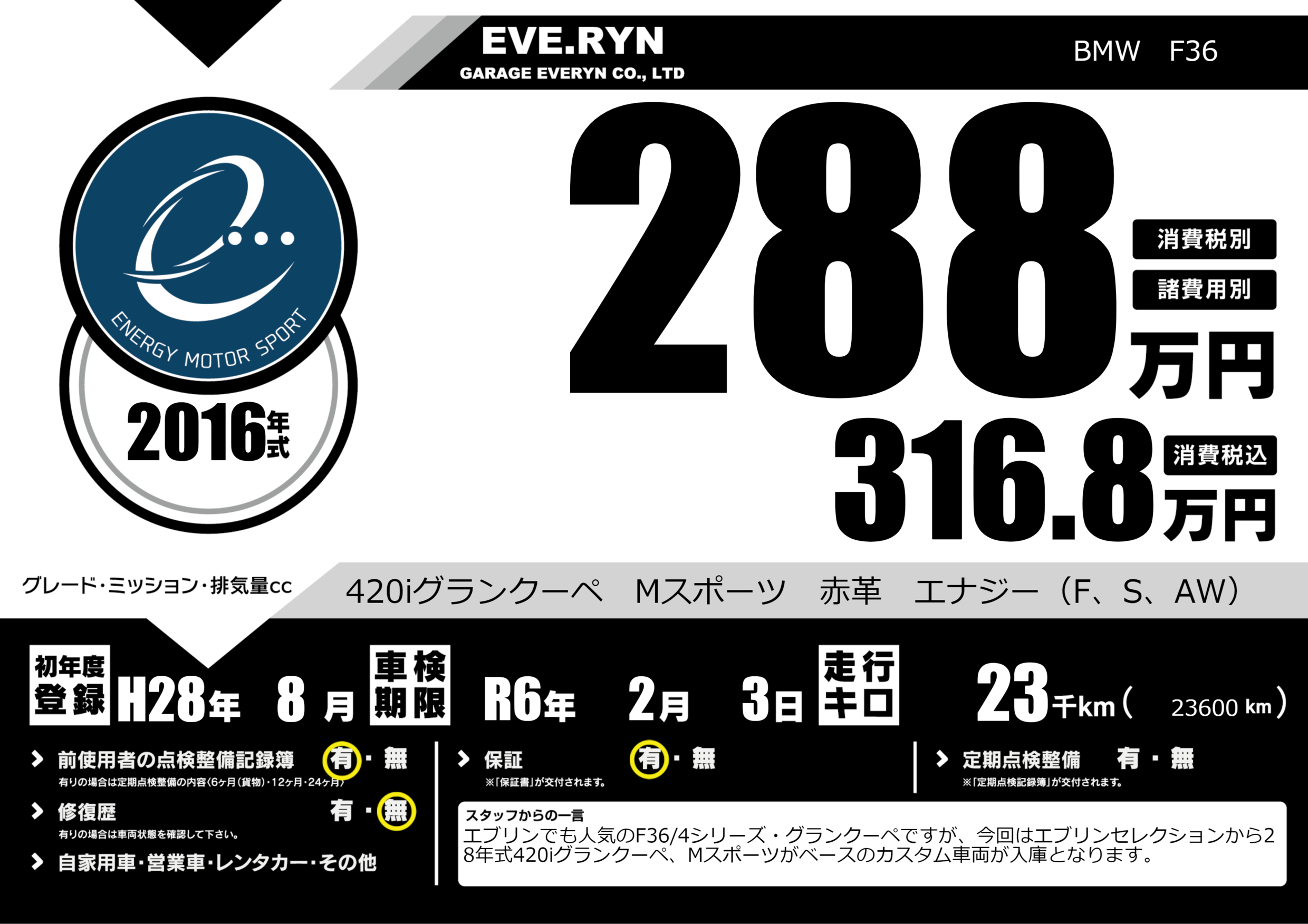 | 車名 | BMW F36 | グレード ミッション 排気量 |