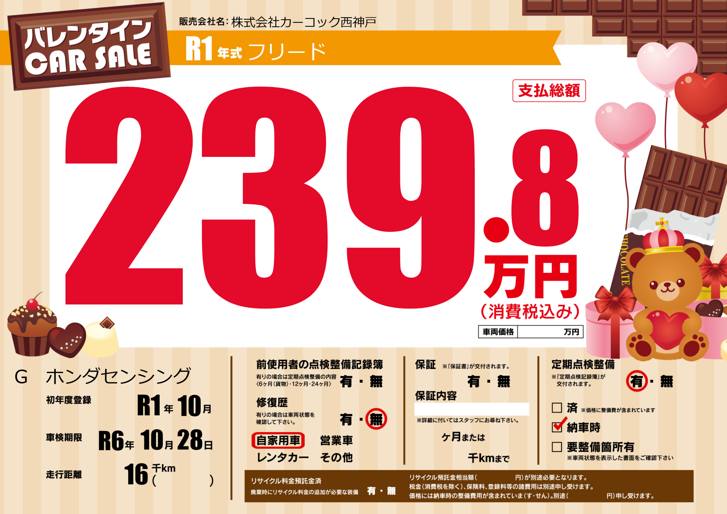 | 定期点検整備 | 定期点検整備あり 納車時あり | ||