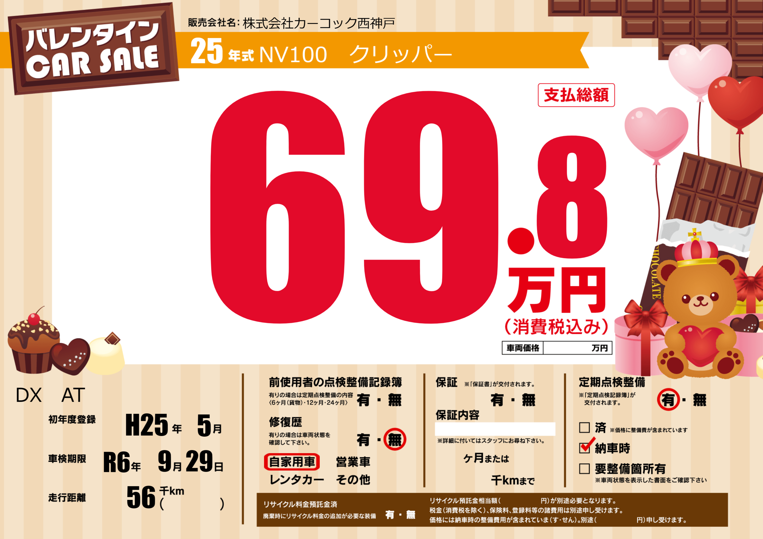 | 定期点検整備 | 定期点検整備あり 納車時あり | ||