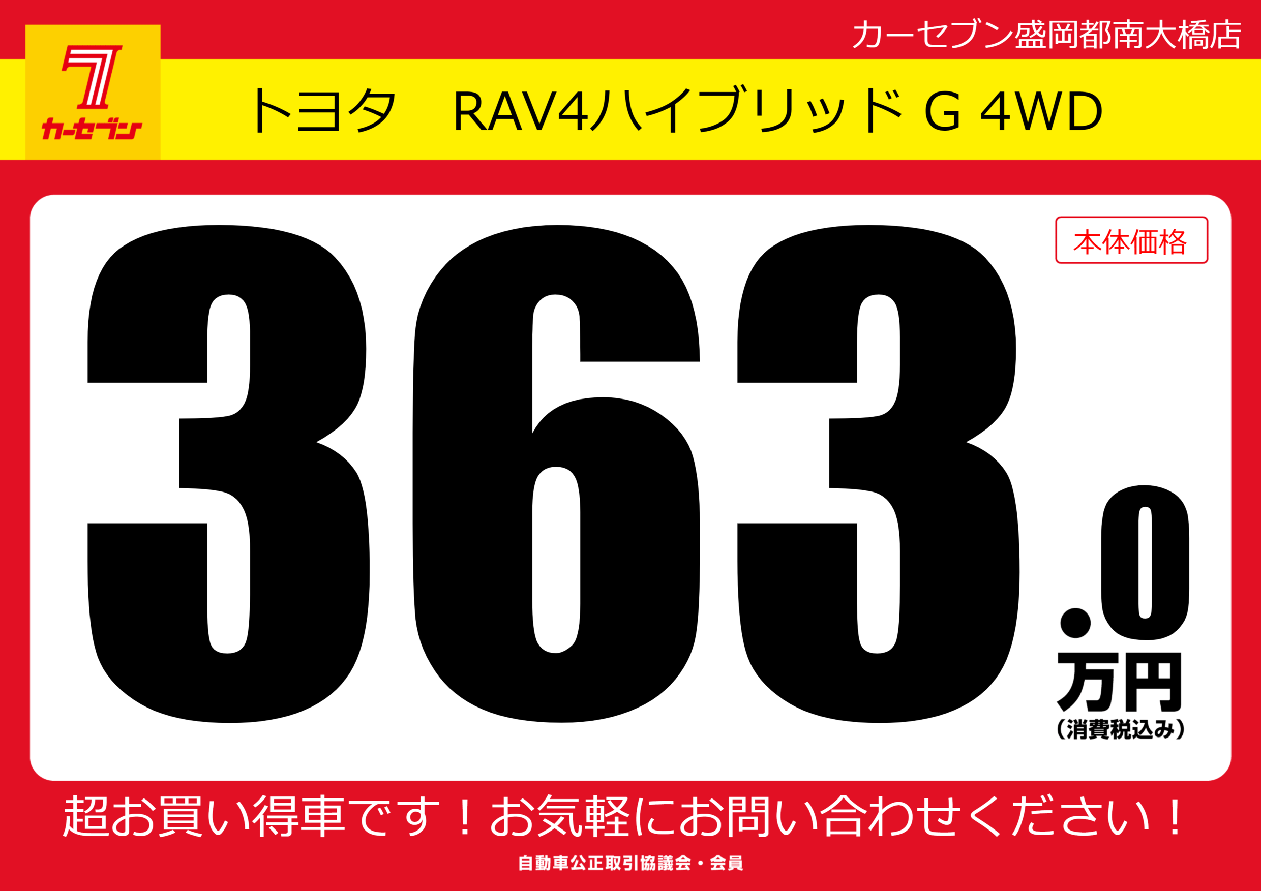 | 車名 | トヨタ RAV4ハイブリッド G 4WD | グレード ミッション 排気量 |
