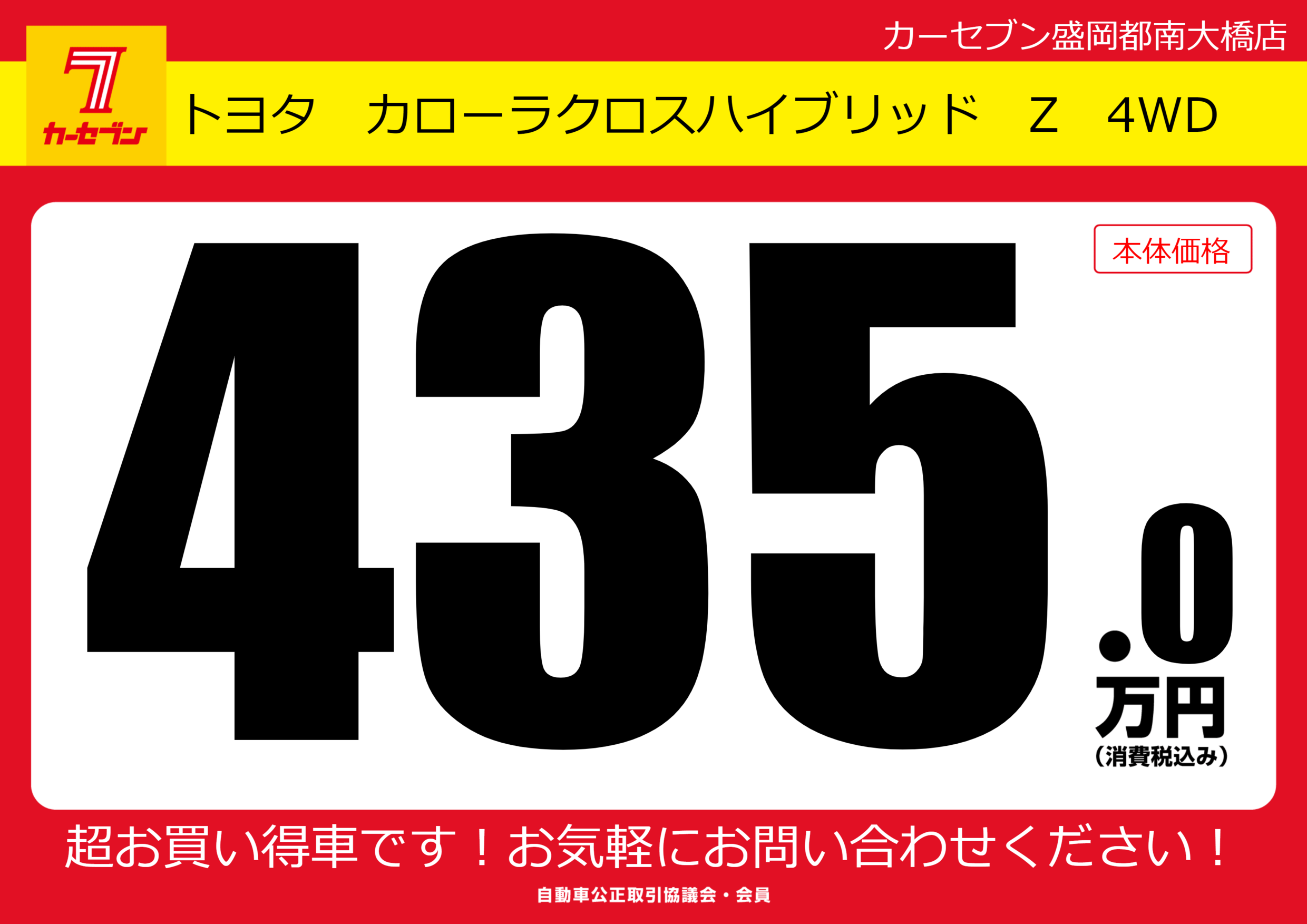 | 車名 | トヨタ カローラクロスハイブリッド Z 4WD | グレード ミッション 排気量 |