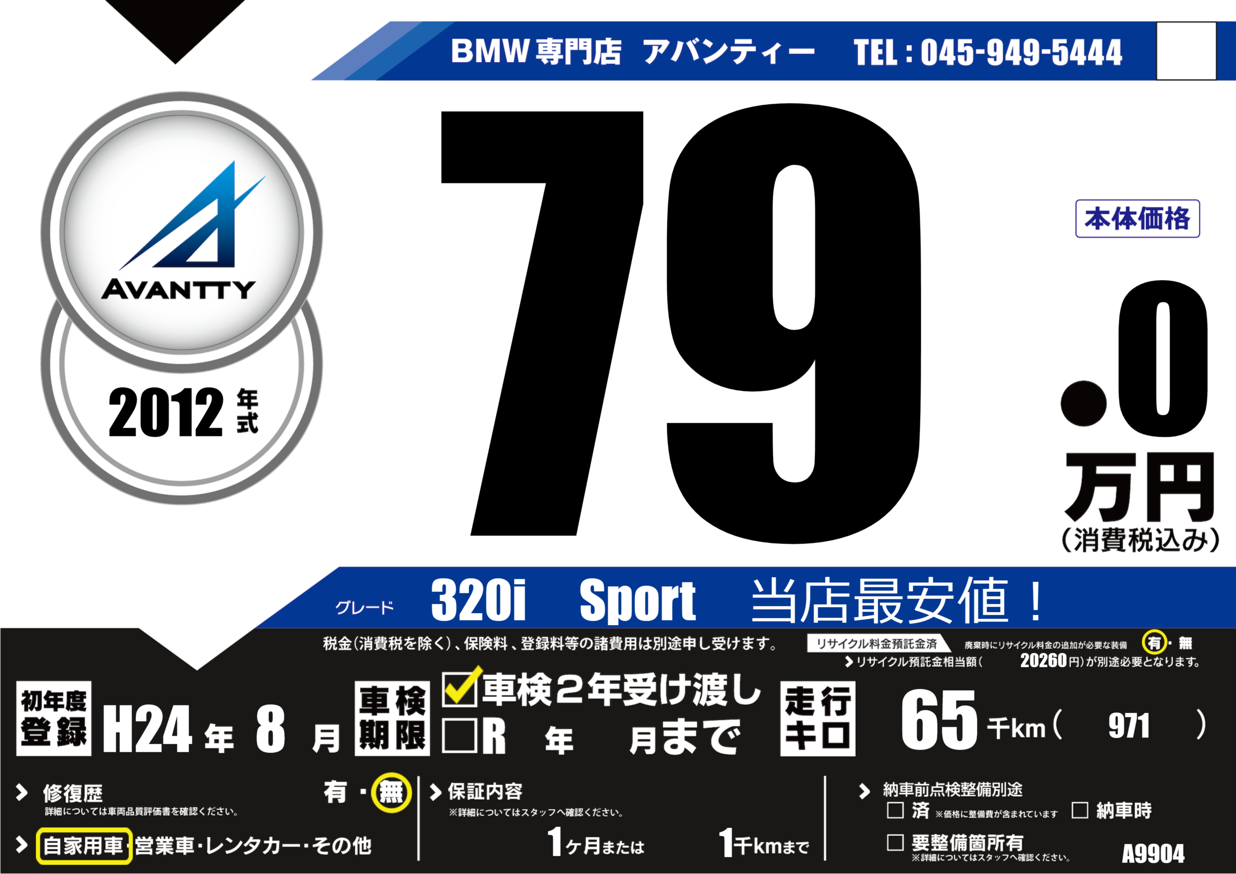 | 走行キロ | 6.5万km | 初年度登録 | H24年8月 |