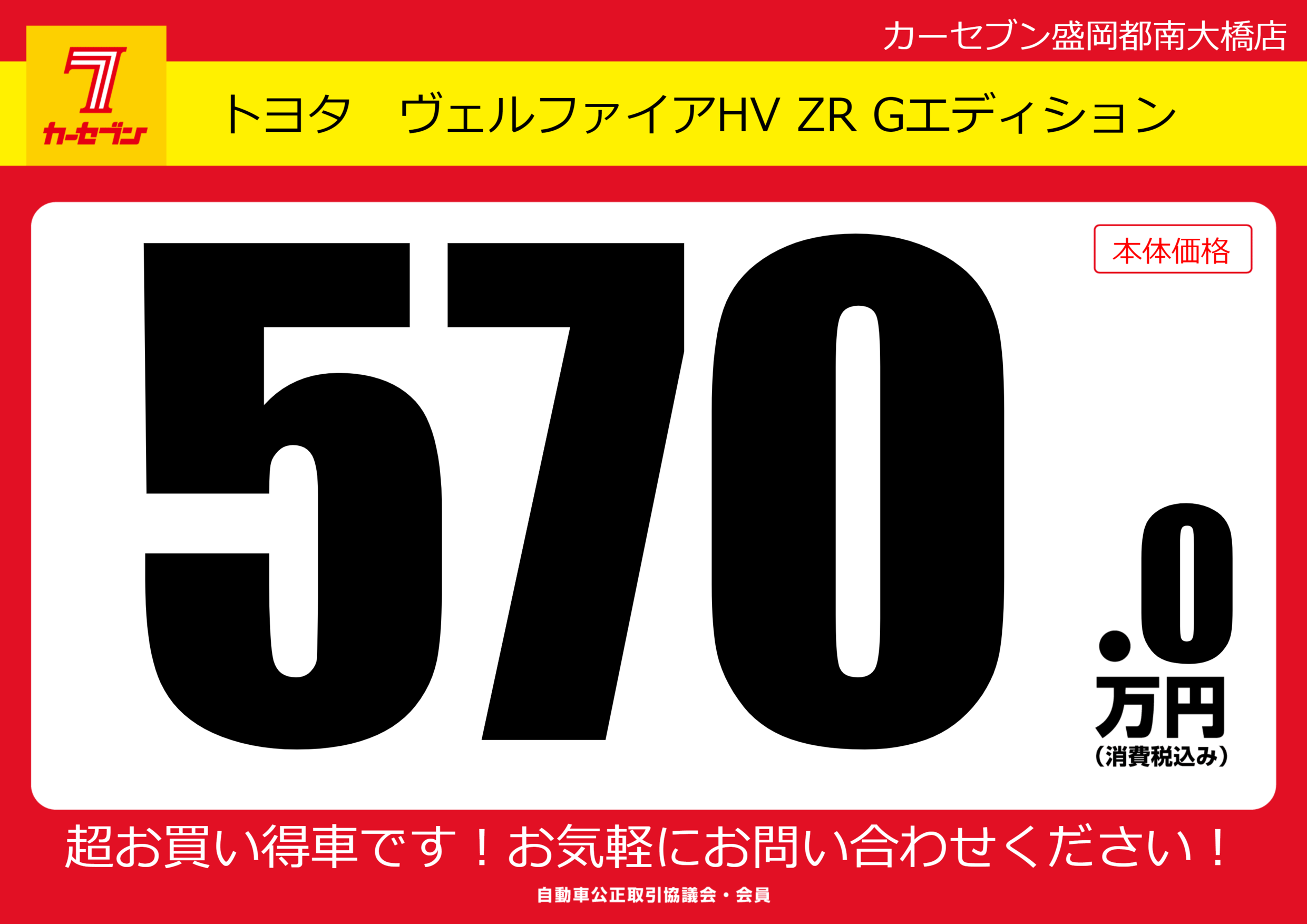 | 車名 | トヨタ ヴェルファイアHV ZR Gエディション | グレード ミッション 排気量 |