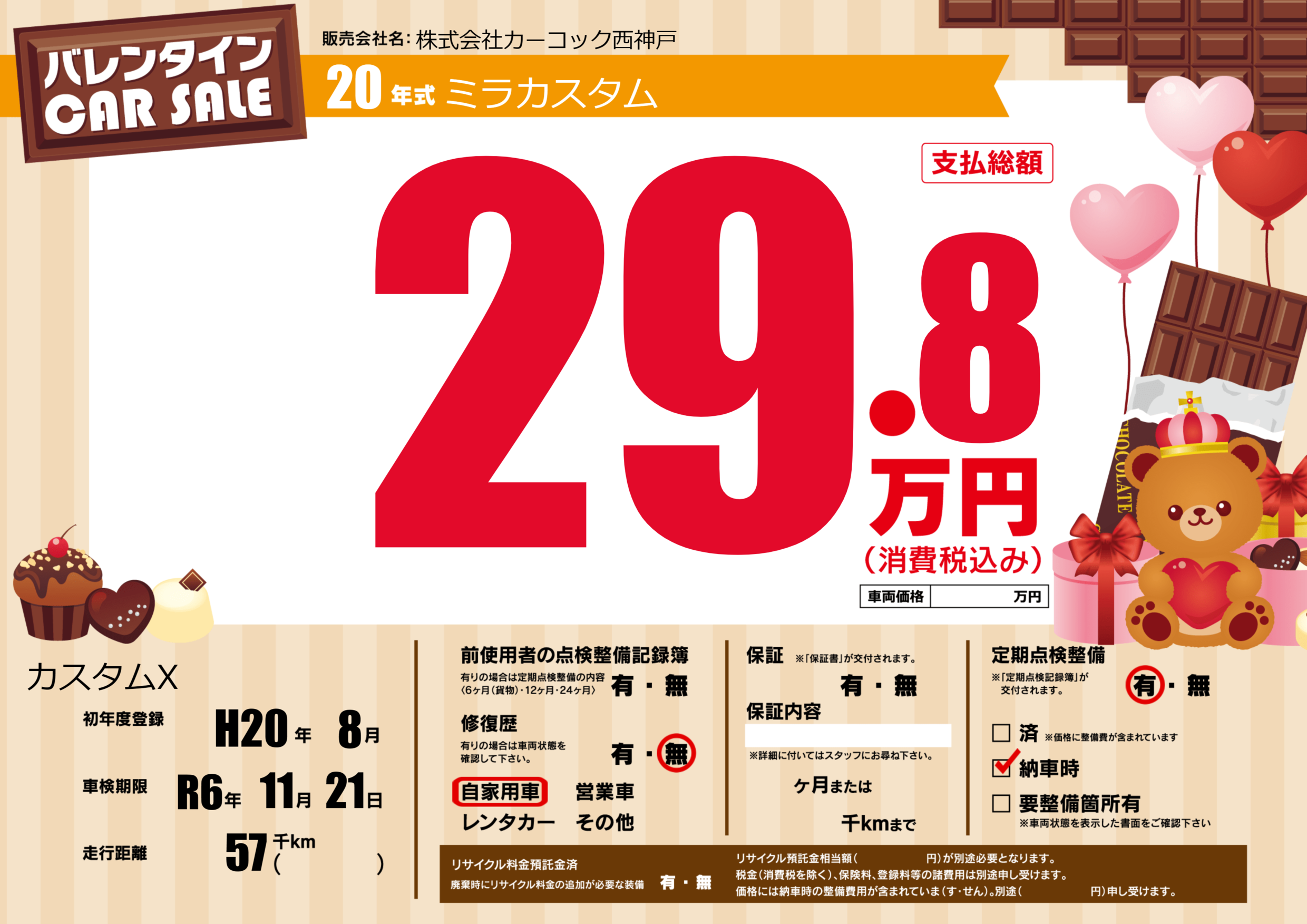 | 定期点検整備 | 定期点検整備あり 納車時あり | ||