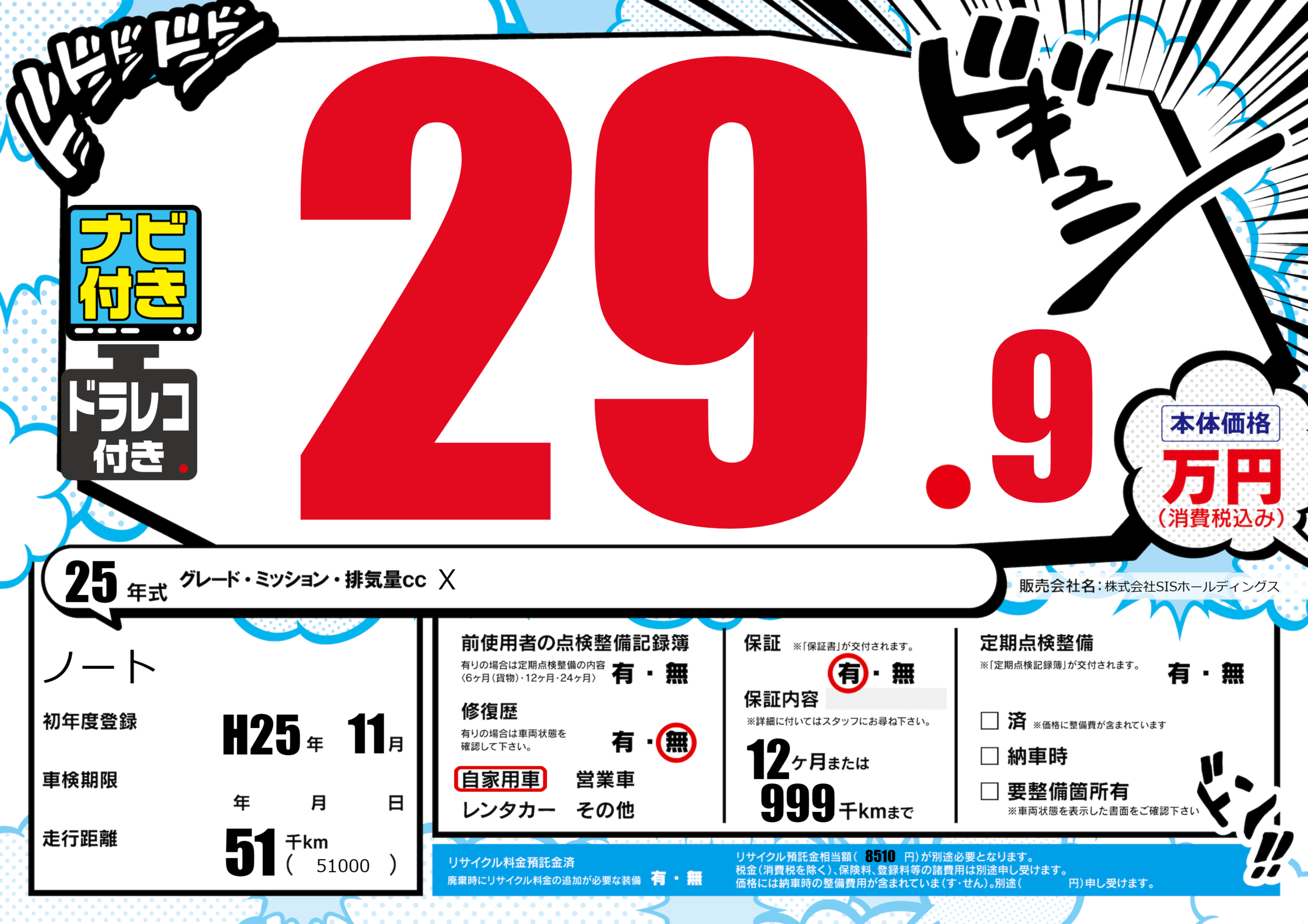 | 走行キロ | 5.1万km | 初年度登録 | H25年11月 |