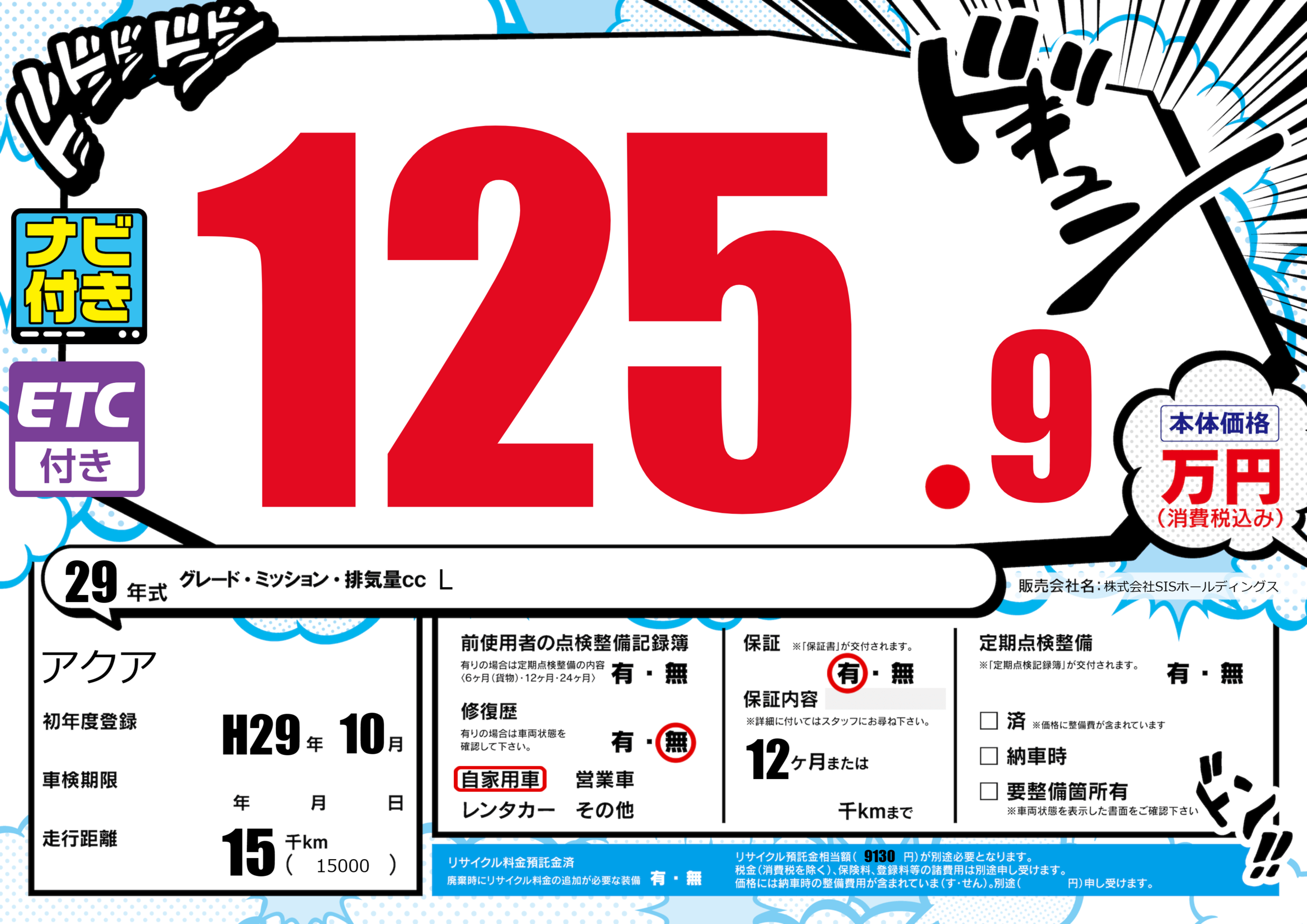 保証付き 保証内容(---) 12ヶ月または()千kmまで |