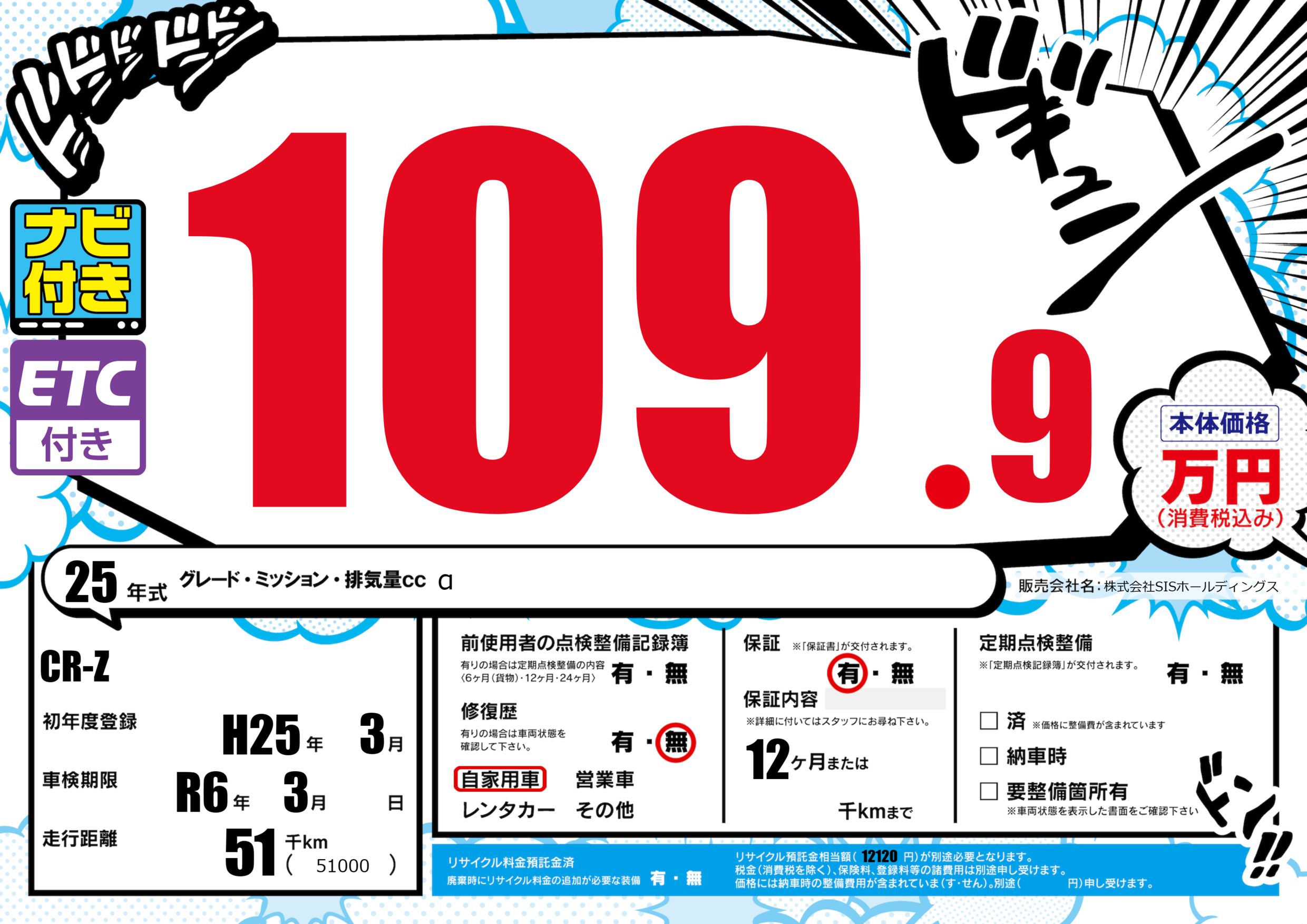 なし | 車検制限 | R6年3月---月 |