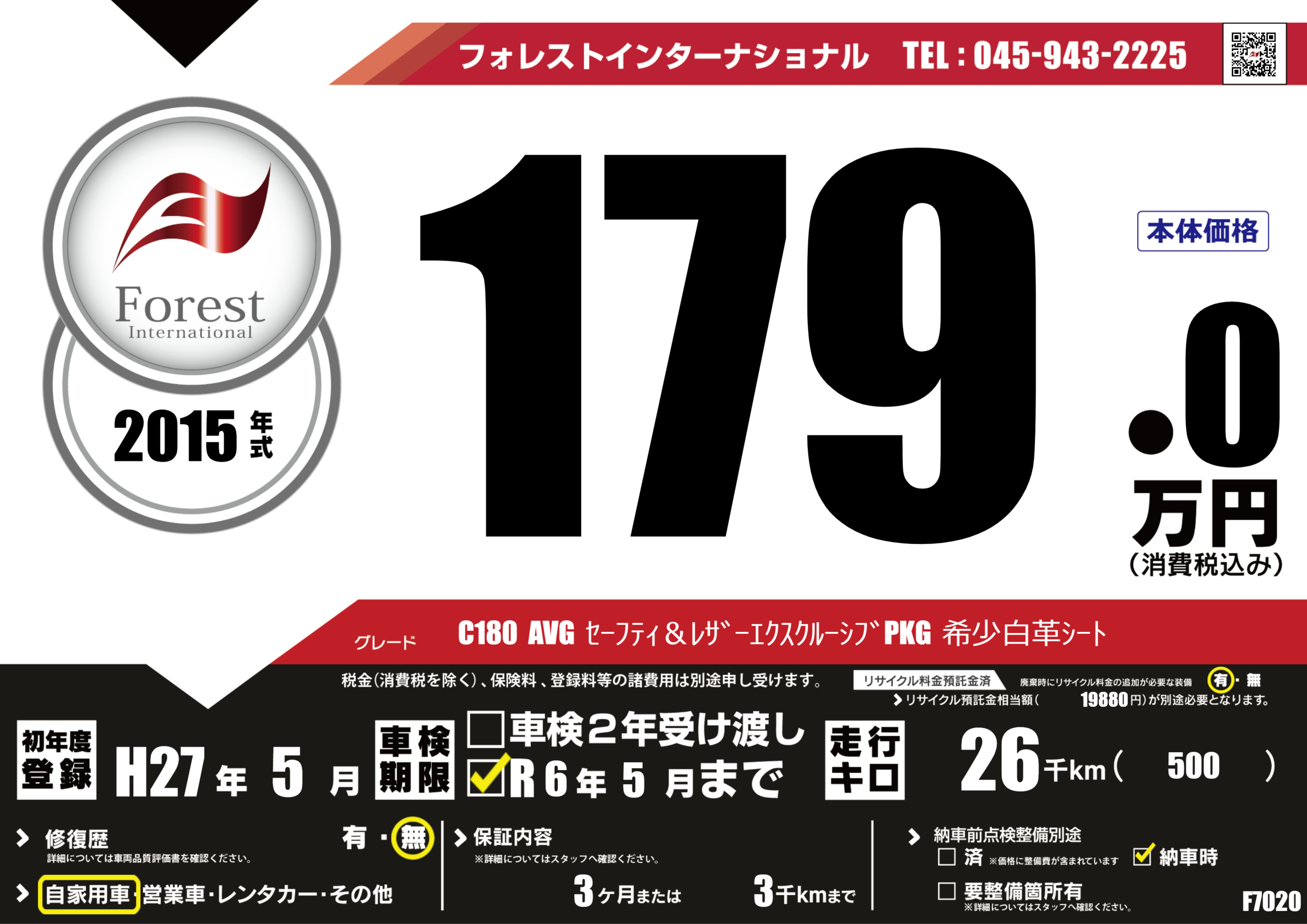 C180 AVG セーフティ&レザーエクスクルーシブPKG 希少白革シート |