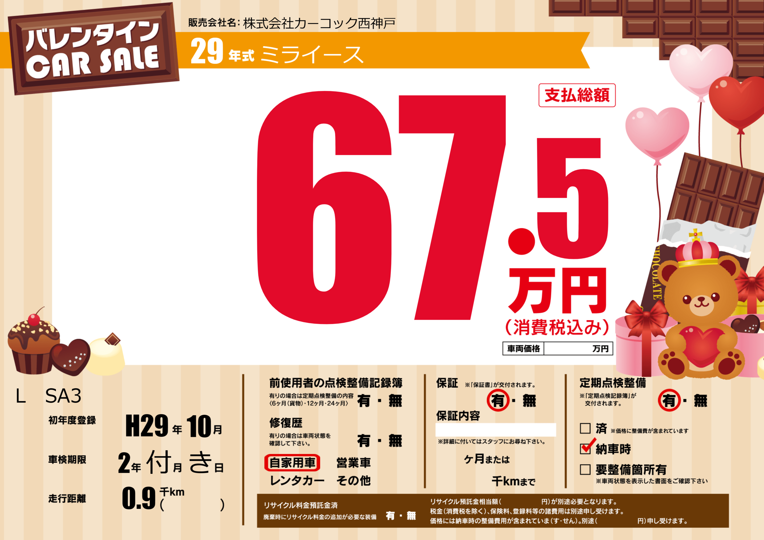 | 走行キロ | - | 初年度登録 | H29年10月 |