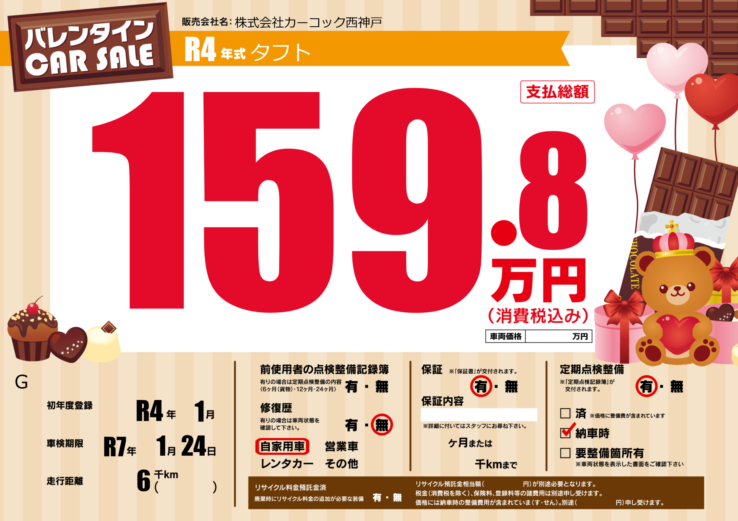 | 定期点検整備 | 定期点検整備あり 納車時あり | ||