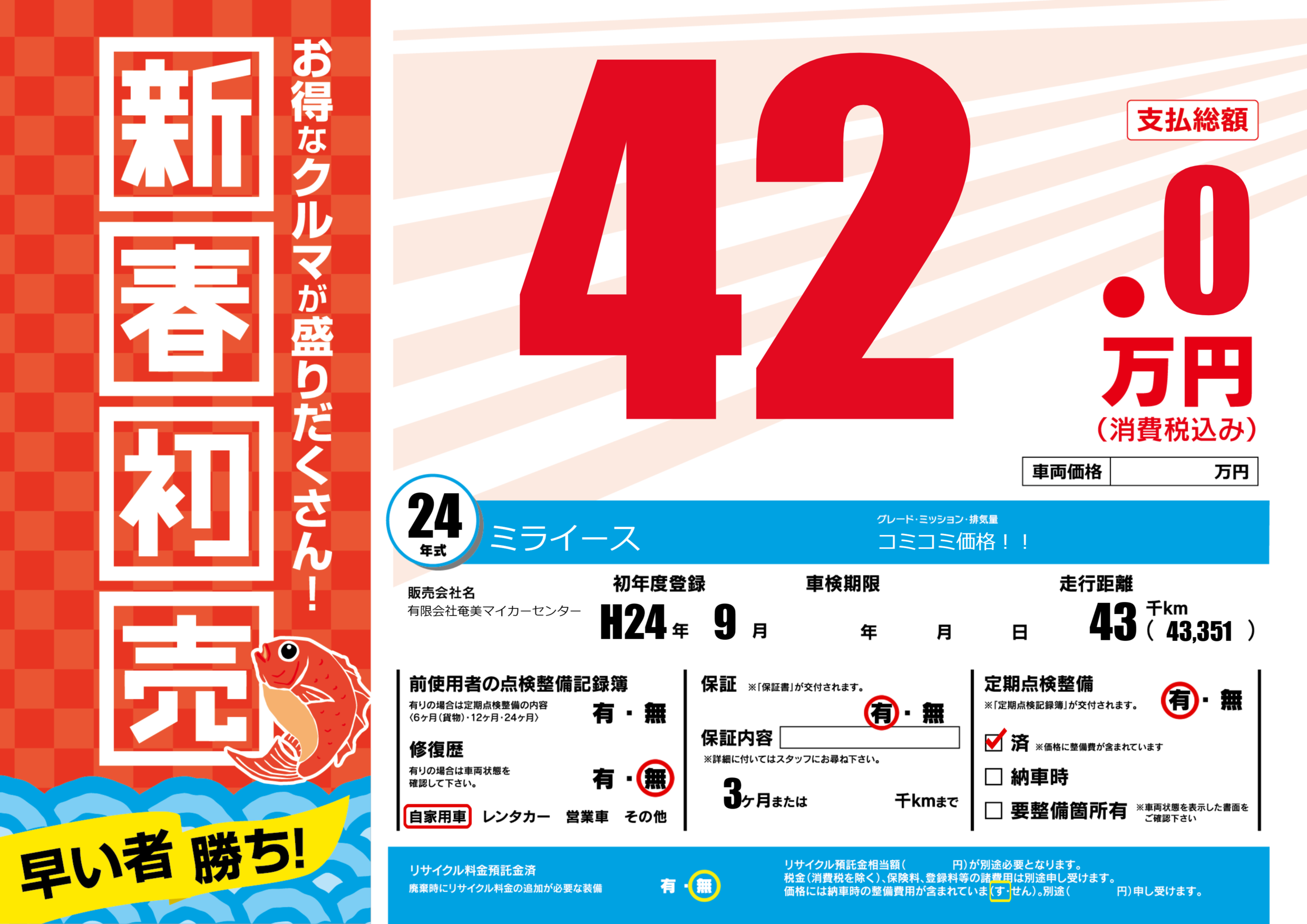 | 定期点検整備 | 定期点検整備あり 定期点検整備済み | ||