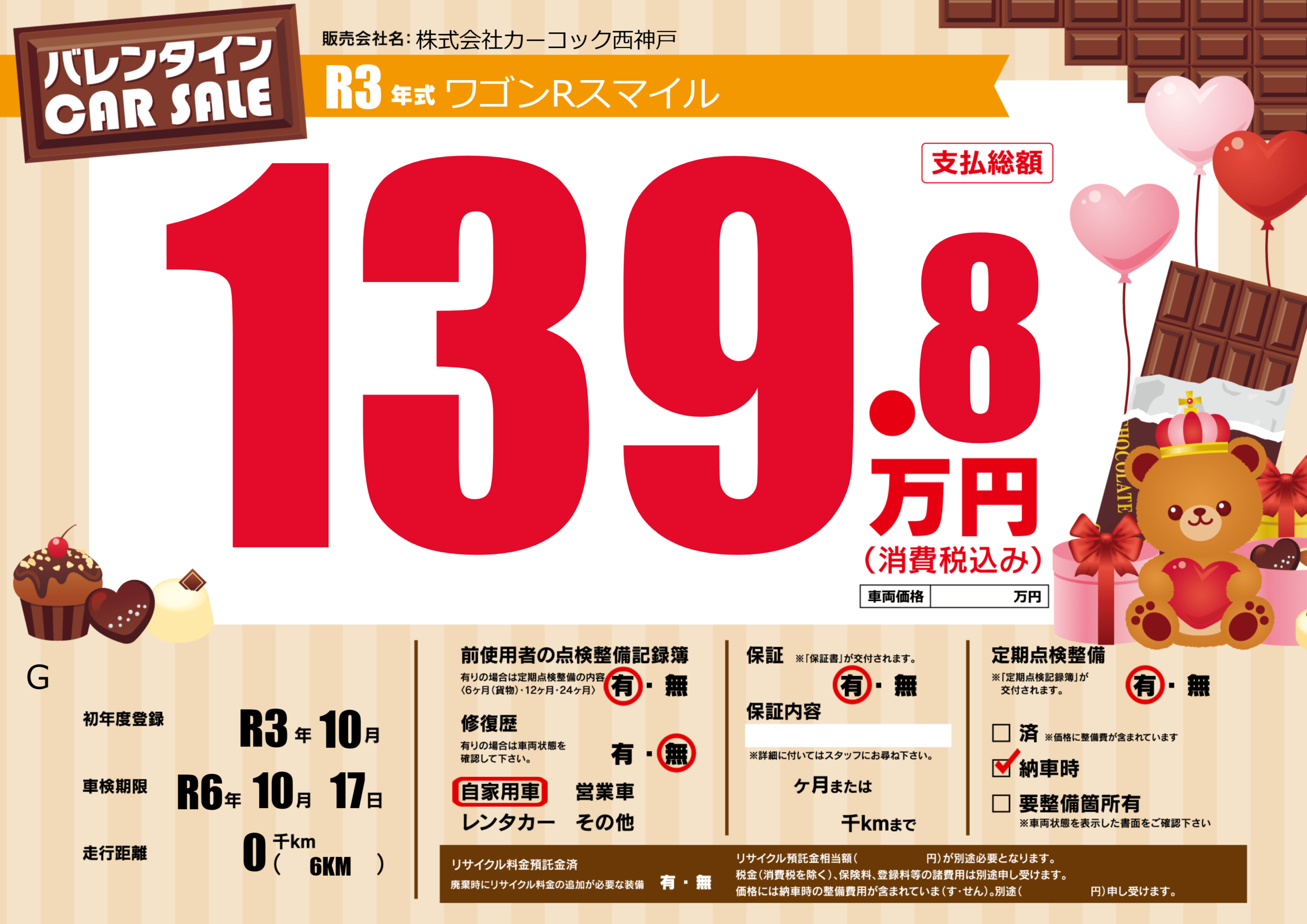| 定期点検整備 | 定期点検整備あり 納車時あり | ||