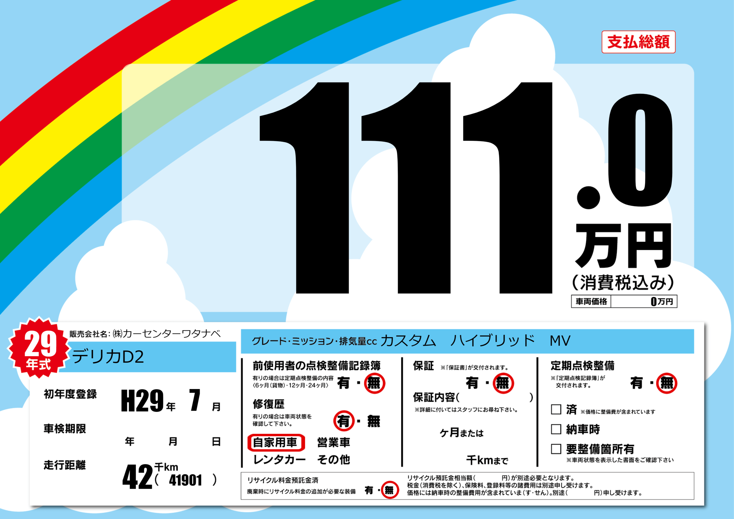 | 定期点検整備 | 定期点検整備なし | ||