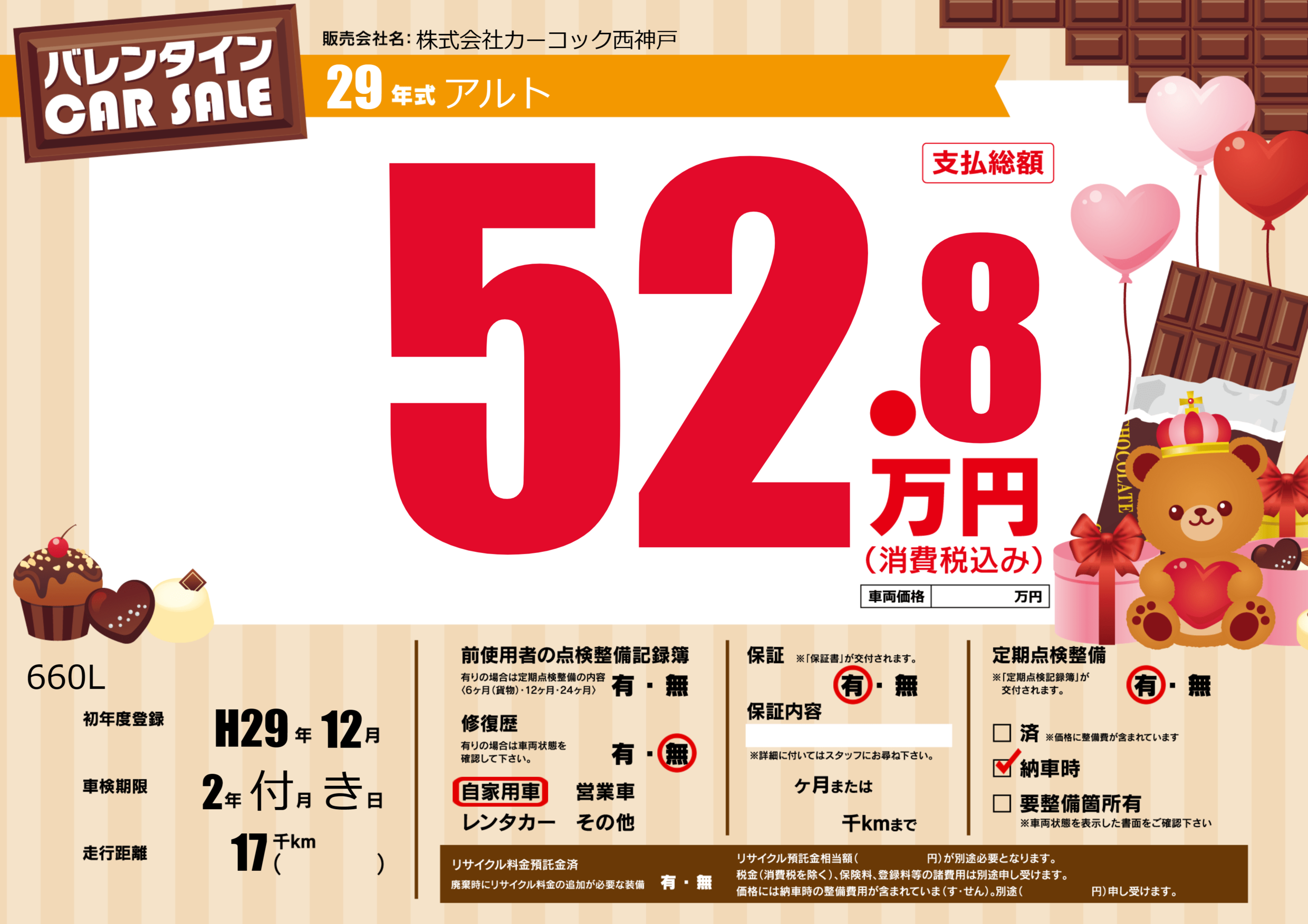 | 定期点検整備 | 定期点検整備あり 納車時あり | ||