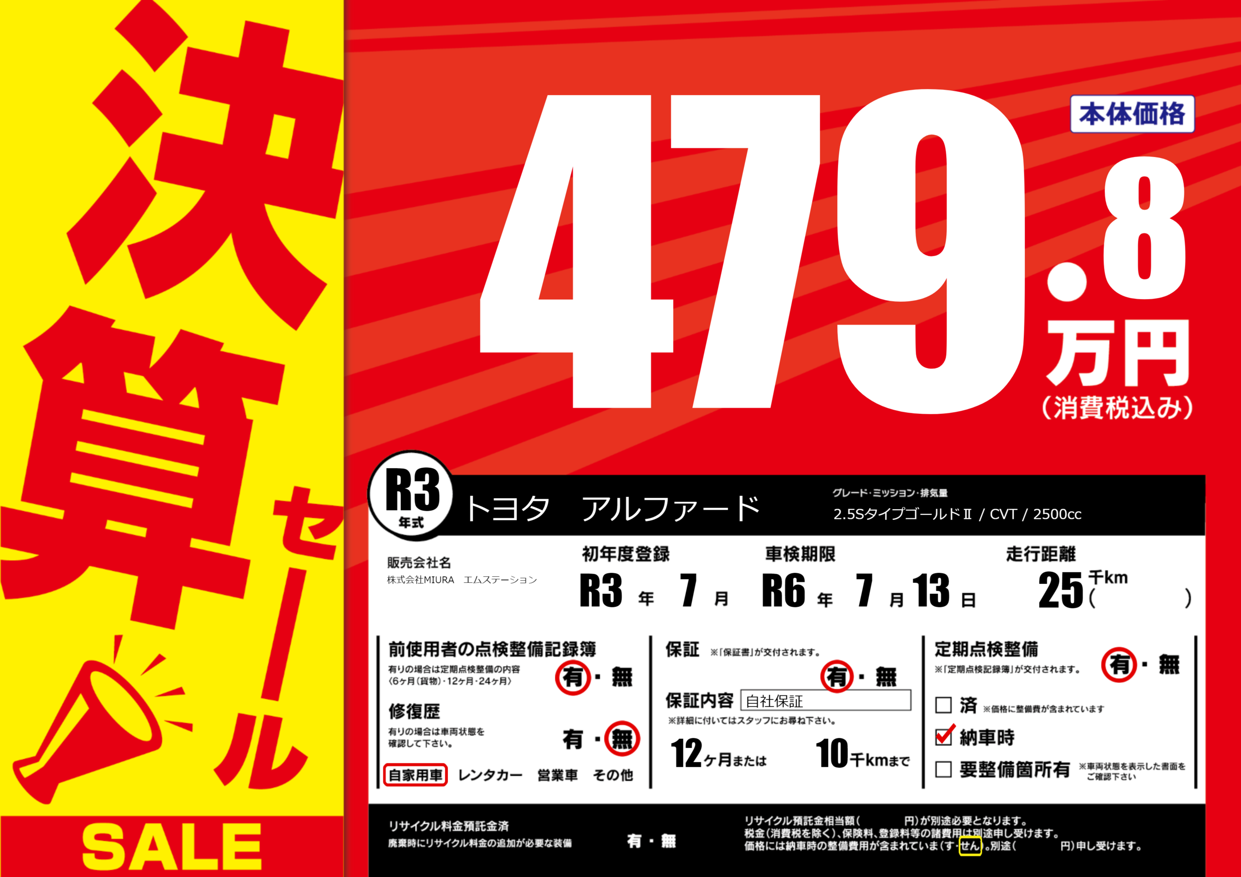 保証付き 保証内容(自社保証) 12ヶ月または10千km |
