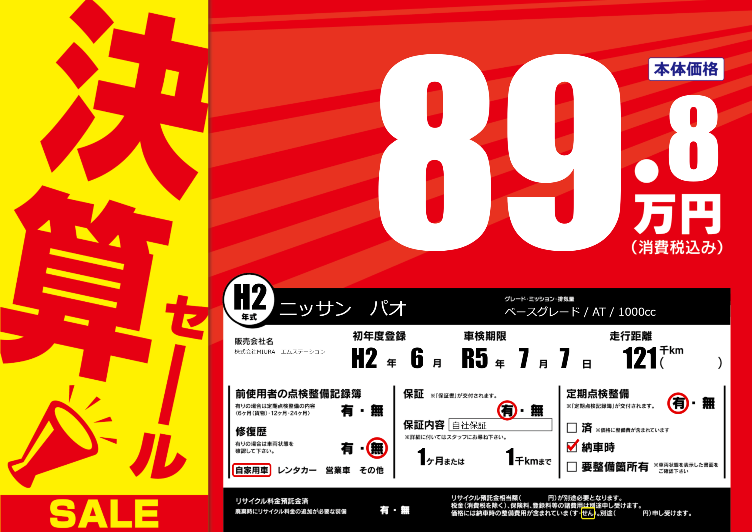 | 車検制限 | R5年 7月 7日 | ||