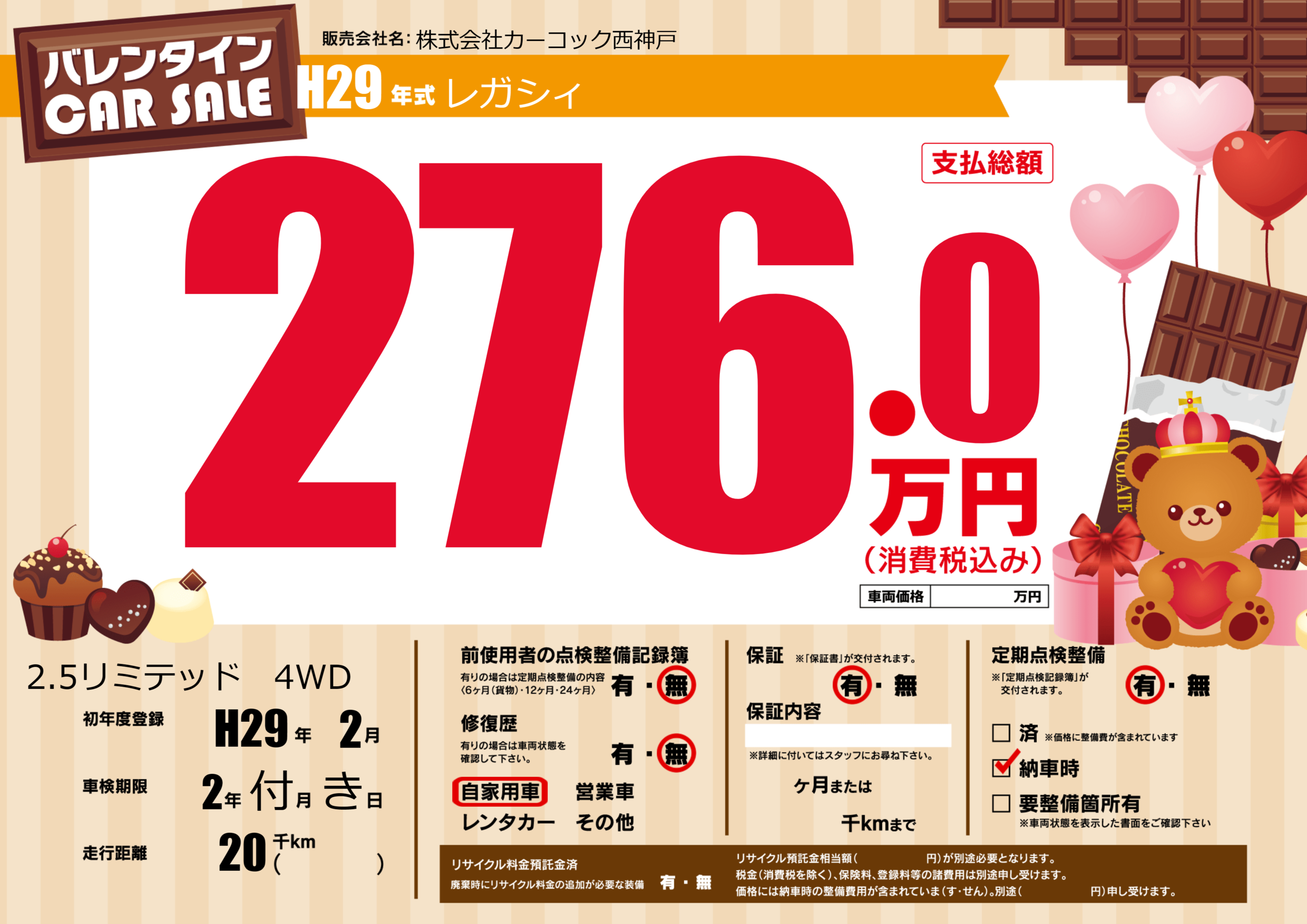 | 定期点検整備 | 定期点検整備あり 納車時あり | ||