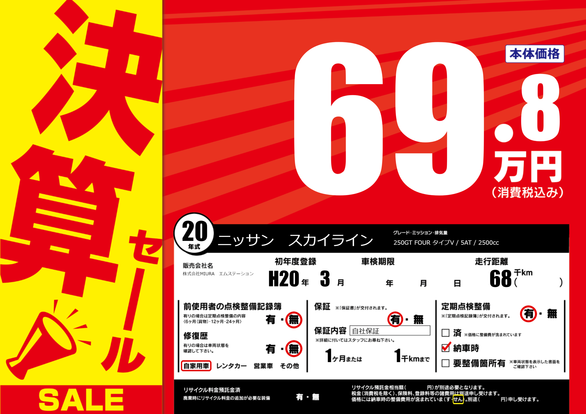 | 車名 | ニッサン スカイライン | グレード ミッション 排気量 |