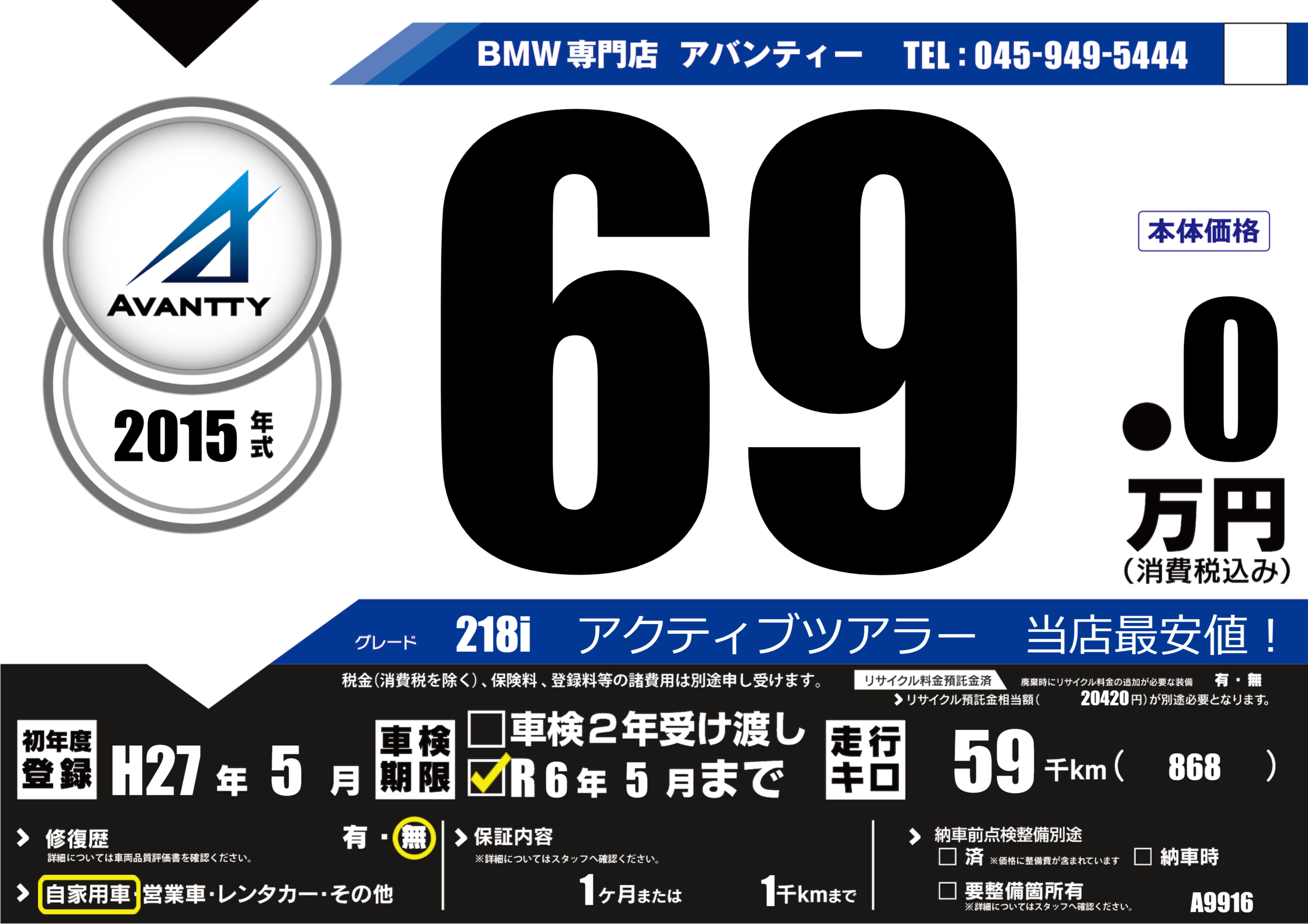 | 走行キロ | 5.9万km | 初年度登録 | H27年5月 |