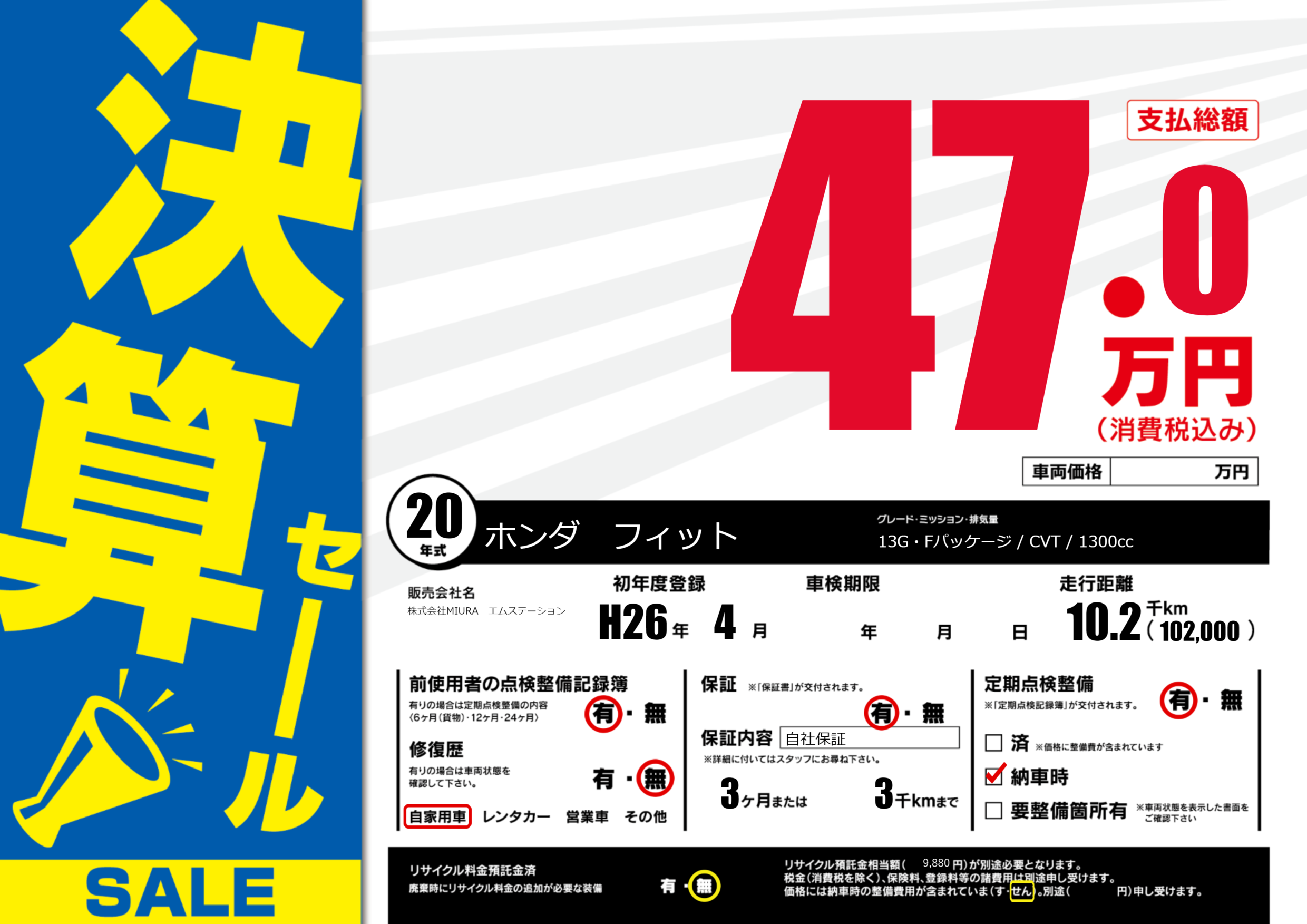 保証付き 保証内容(自社保証) 3ヶ月または3千km |