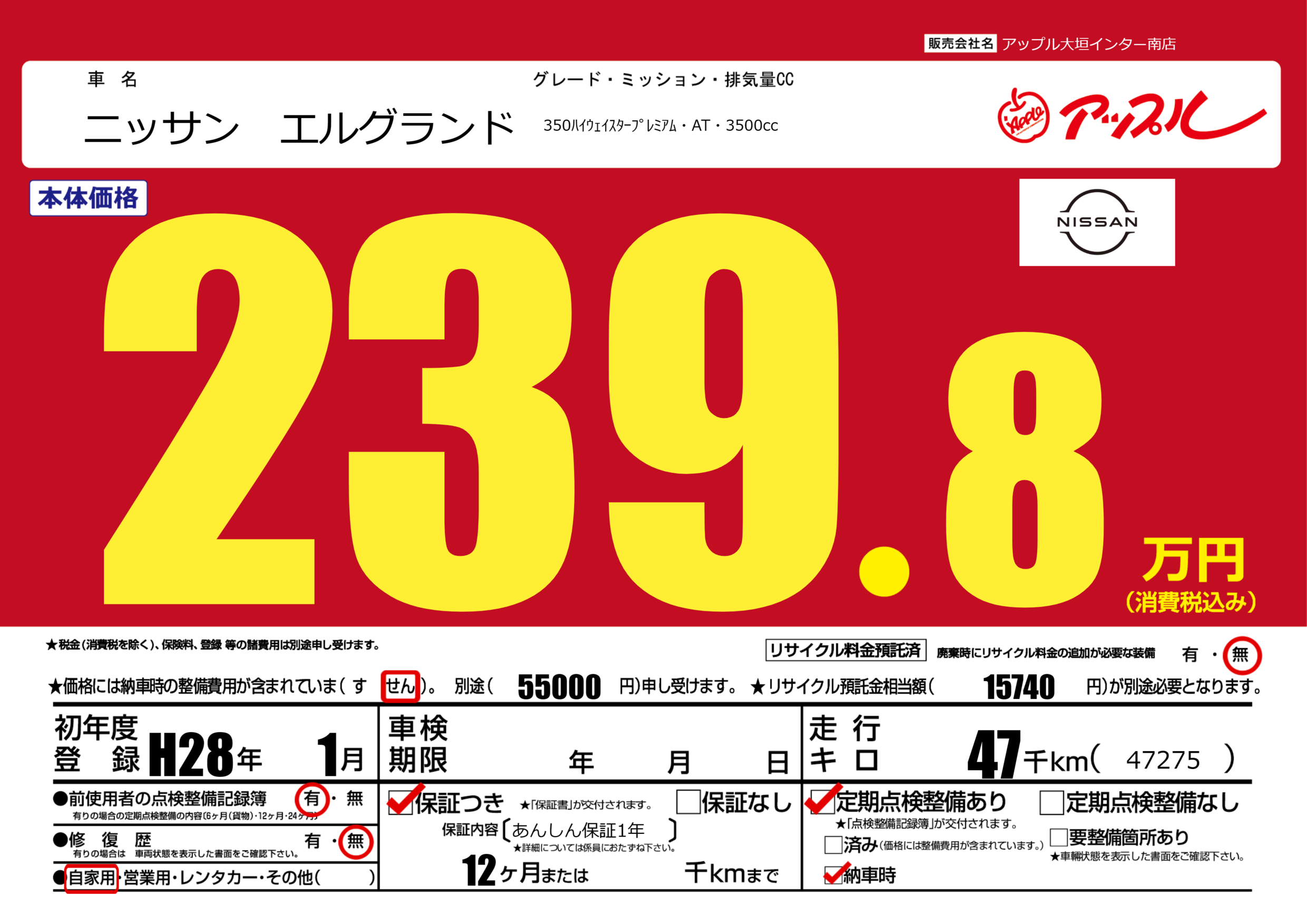 | 走行キロ | 4.7万km | ||