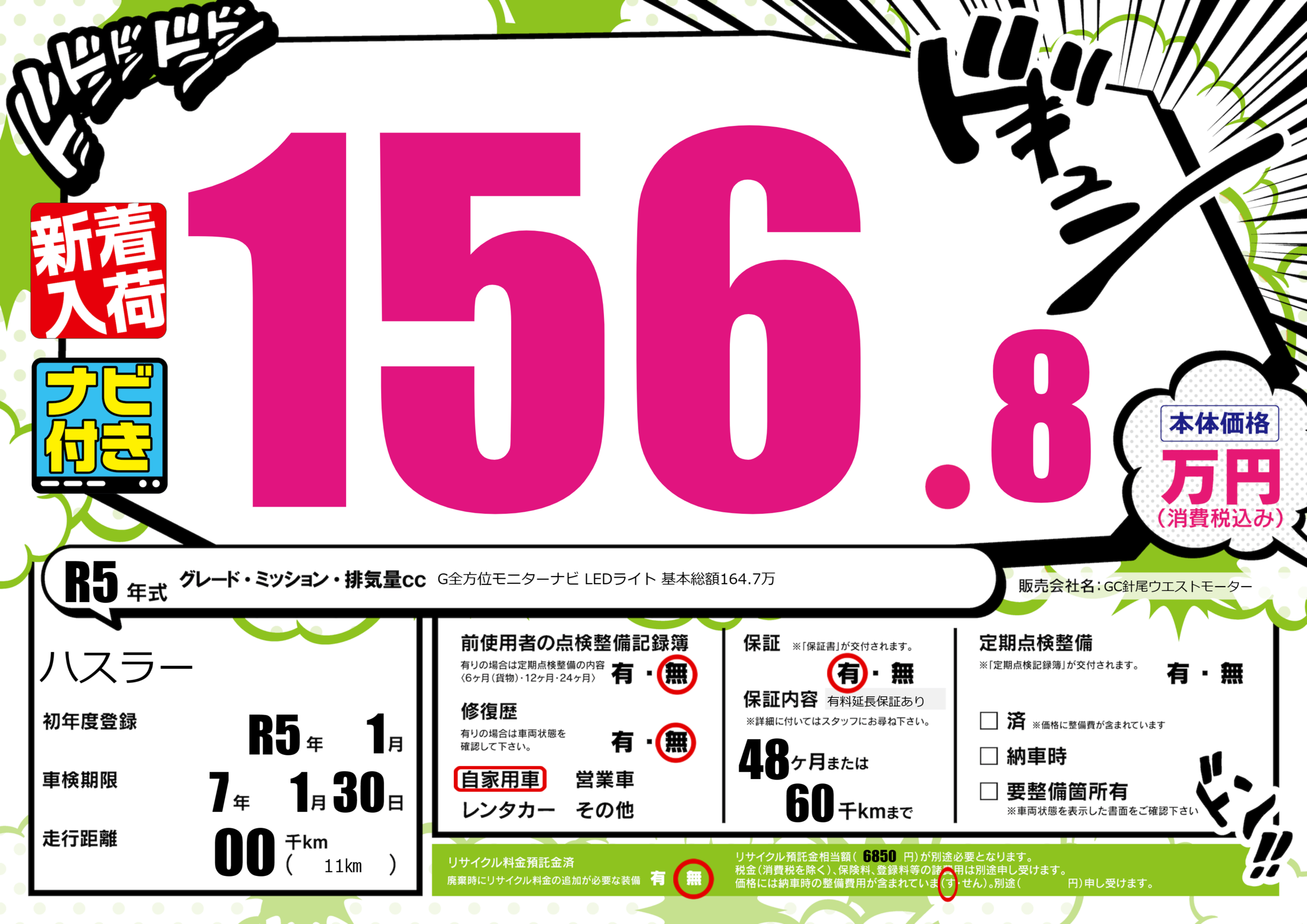 G全方位モニターナビ LEDライト 基本総額164.7万 |